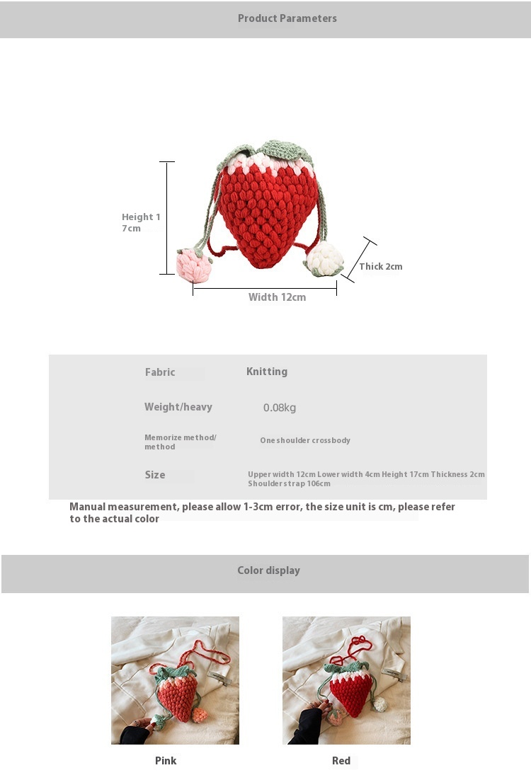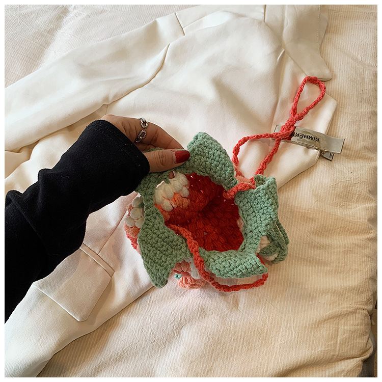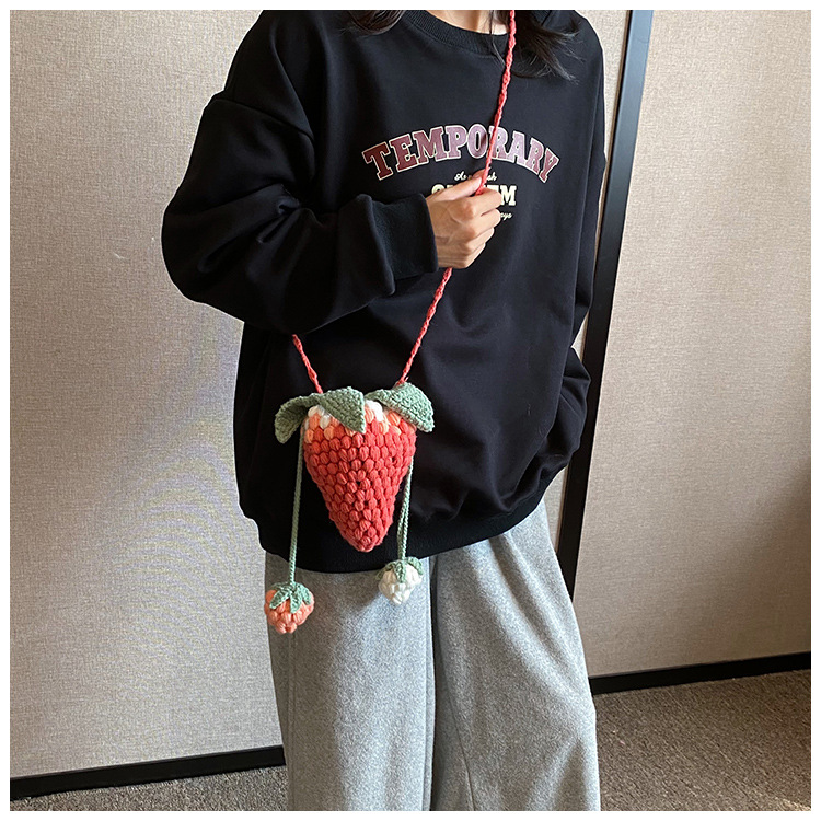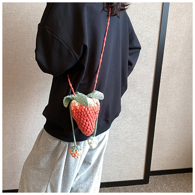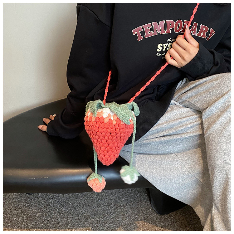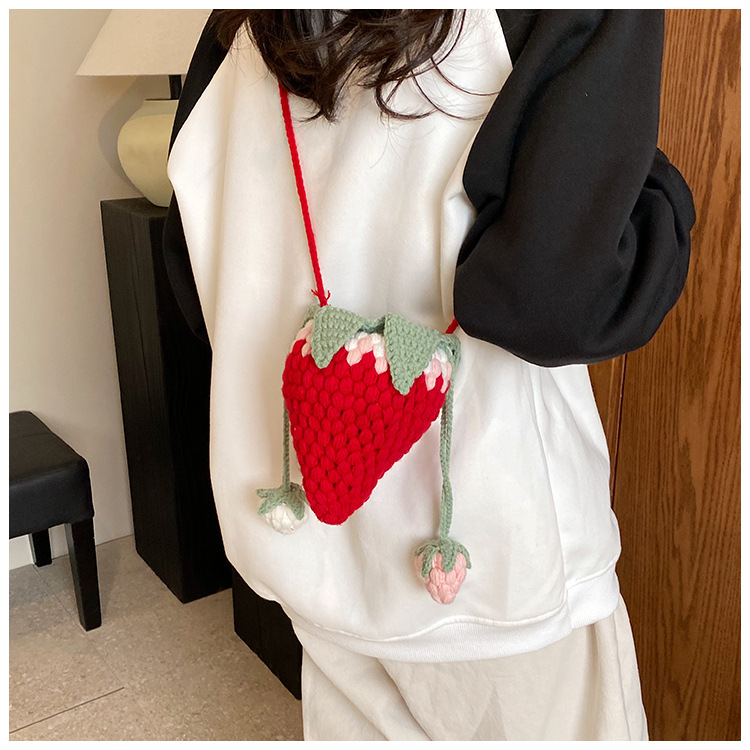 Crocheted Wool Strawberry Bag Cute
