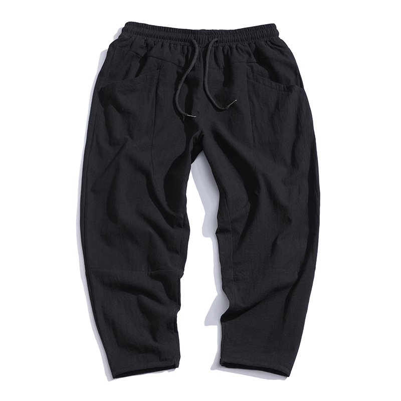 Cropped Pants Men's Loose Plus Size Cotton And Linen