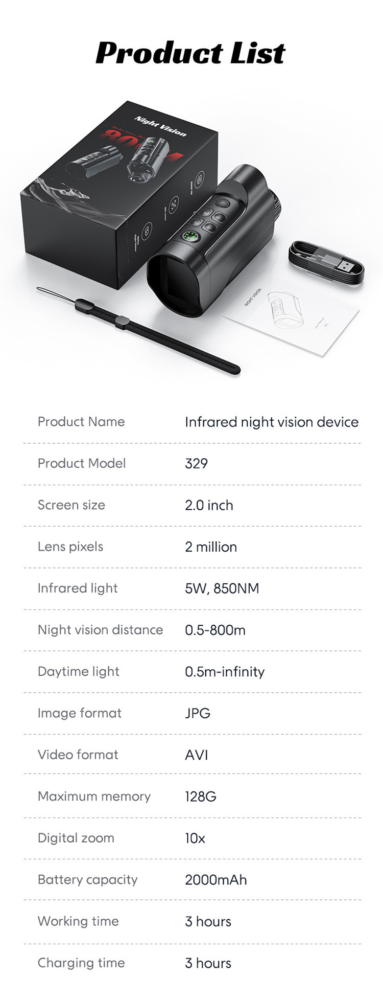 Infrared lamp: 5W,850NM,7-speed infrared adjustment