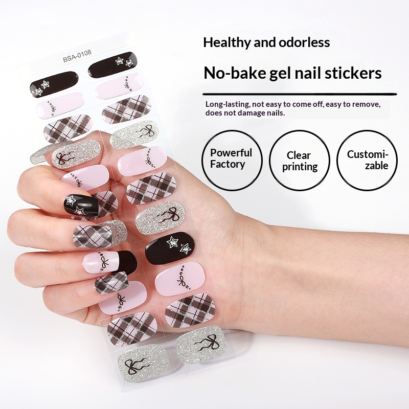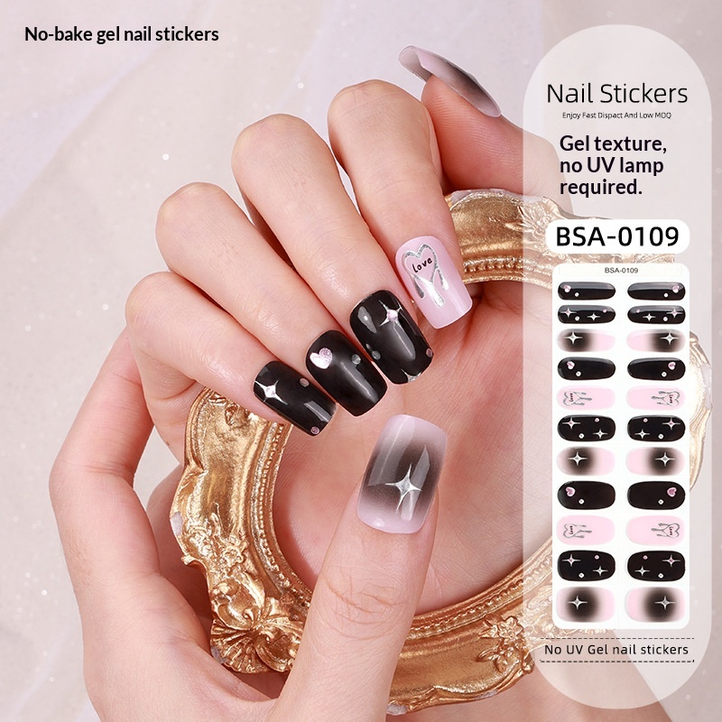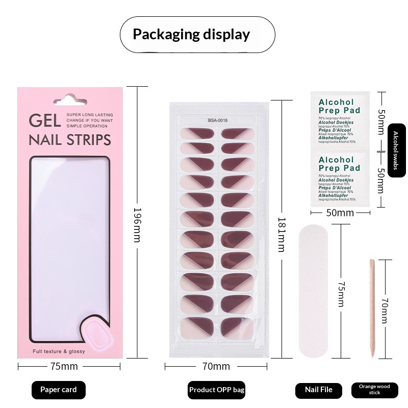 Specifications: Nail stickers + paper card + alcohol swab + nail file + wooden stick