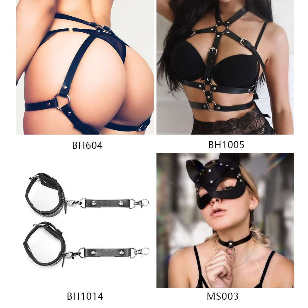 Color: Mask (MS003), handcuffs (BH1014), jacket (BH1005), bottom (BH604), bottom (TD128), BT010 jacket bottom 2 piece set (BH1005 BH604),BT011 top bottom handcuffs set of 3 (BH1005 BH604 BH1014),BT012 top bottom handcuffs mask set of 4 (BH1005 BH604 BH1014 MS003),BT028 upper and lower handcuffs mask set of 4 (BH1005 TD128 BH1014 MS003)