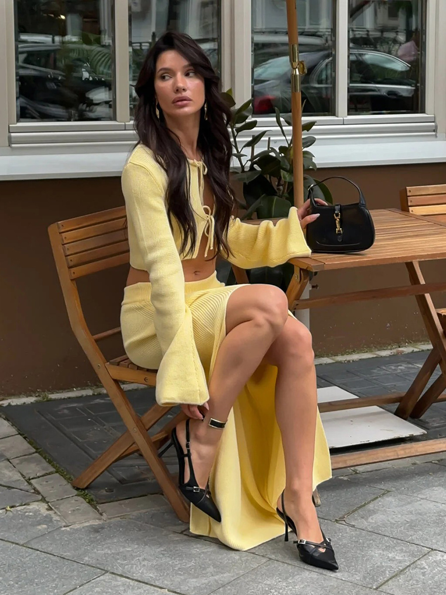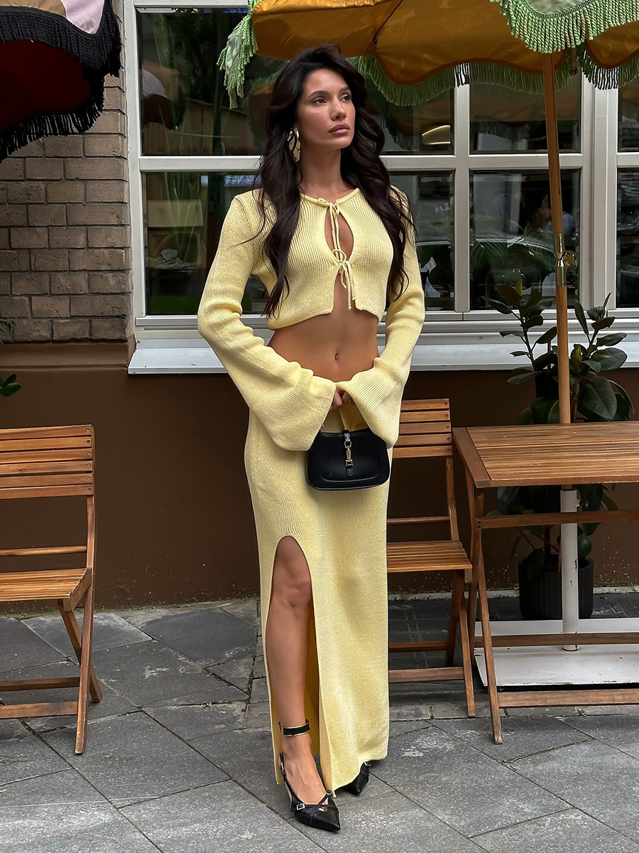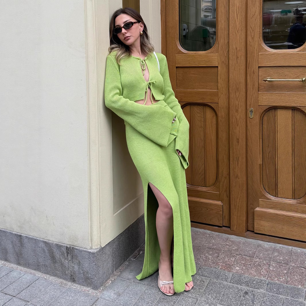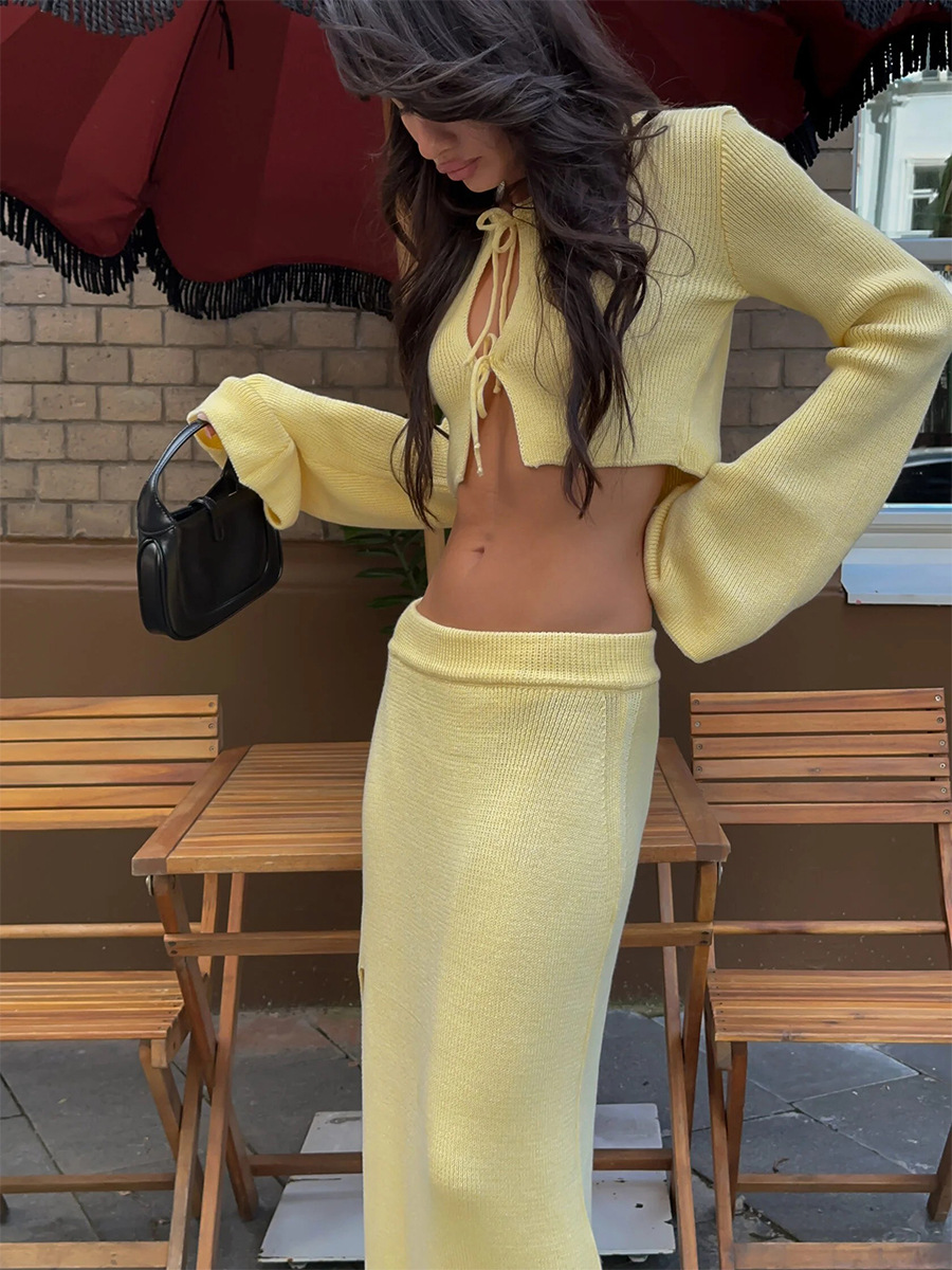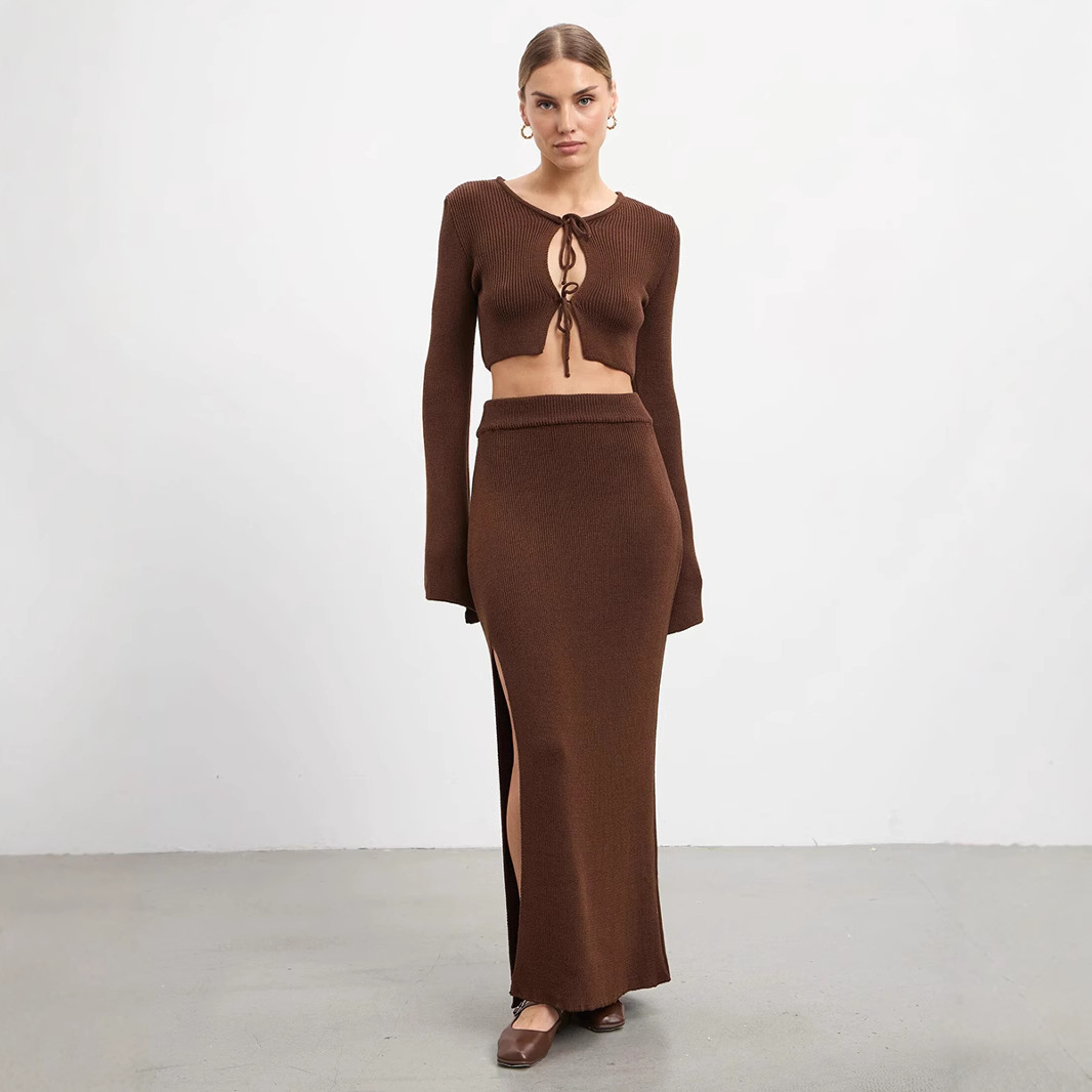 Cross-border Lace-up Long-Sleeve Midi Skirt Set European And American Style