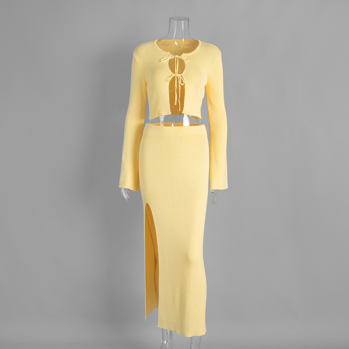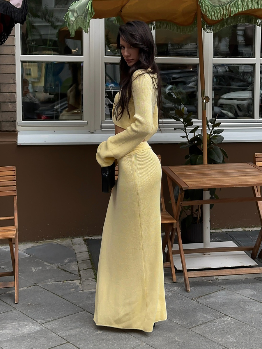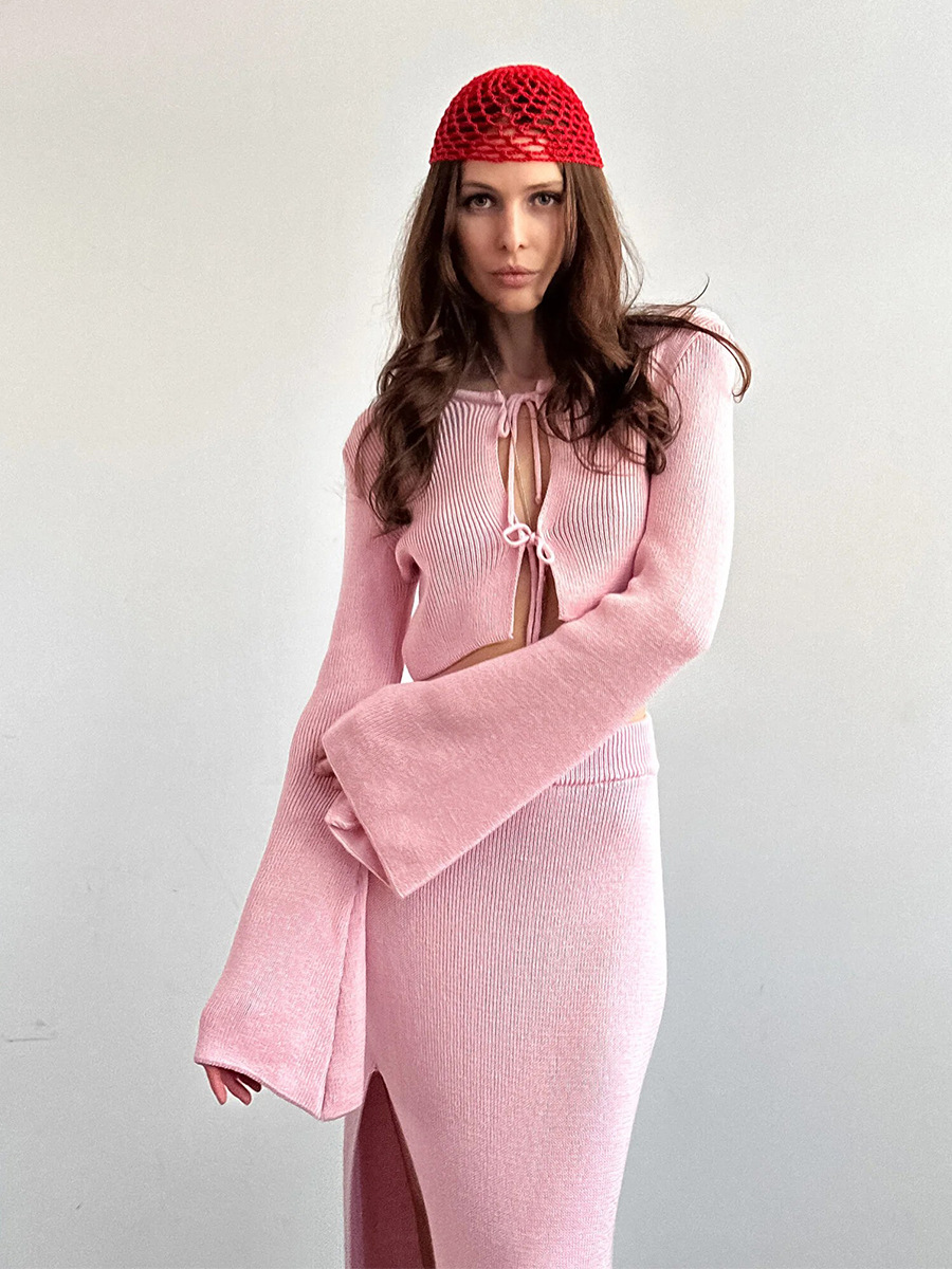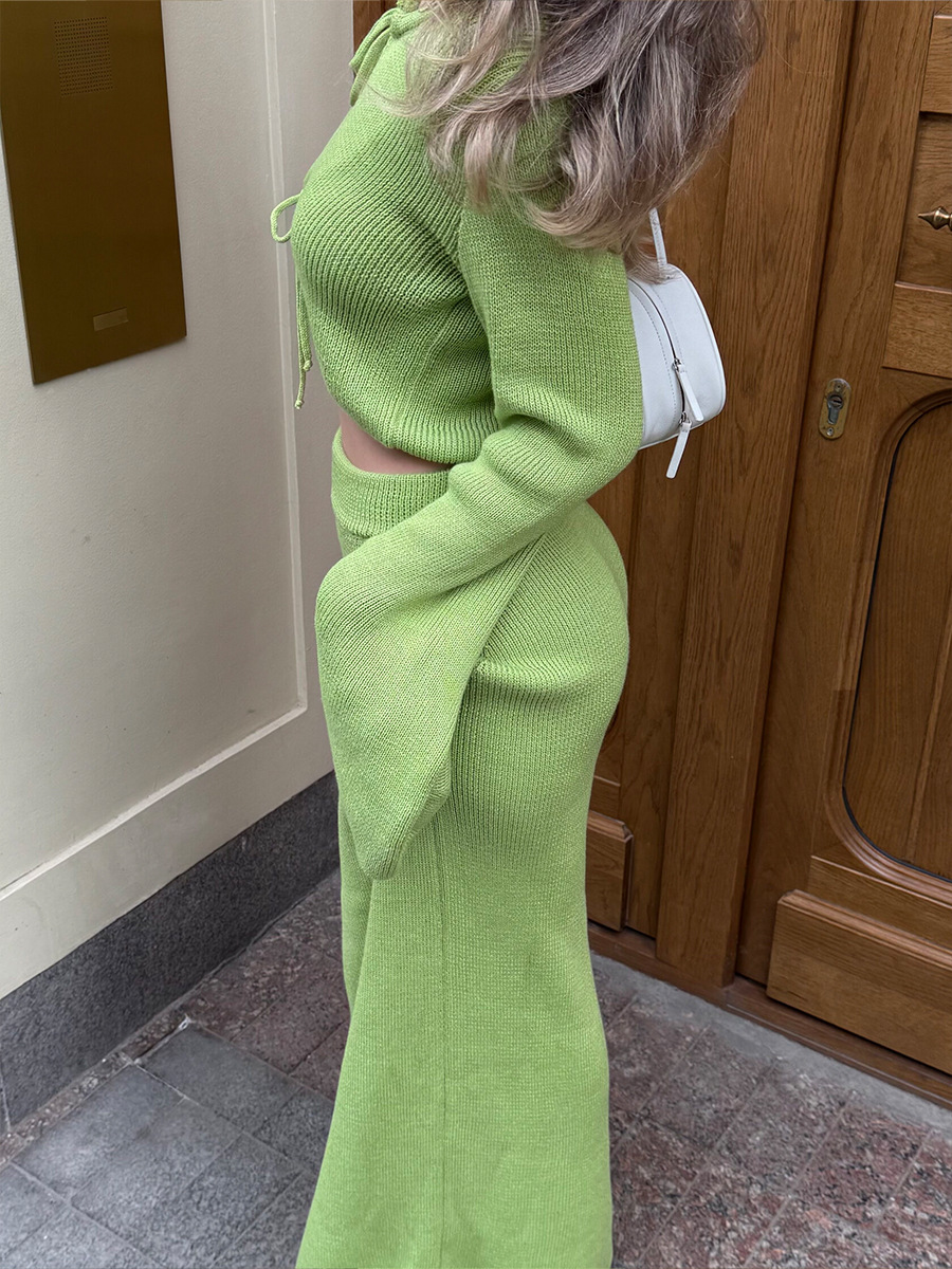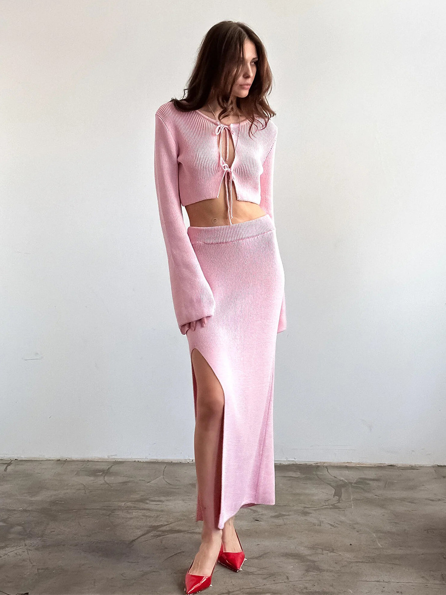Cross-border Lace-up Long-Sleeve Midi Skirt Set European And American Style