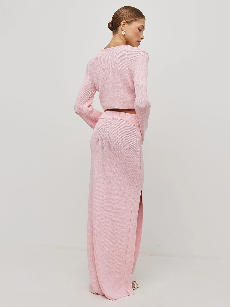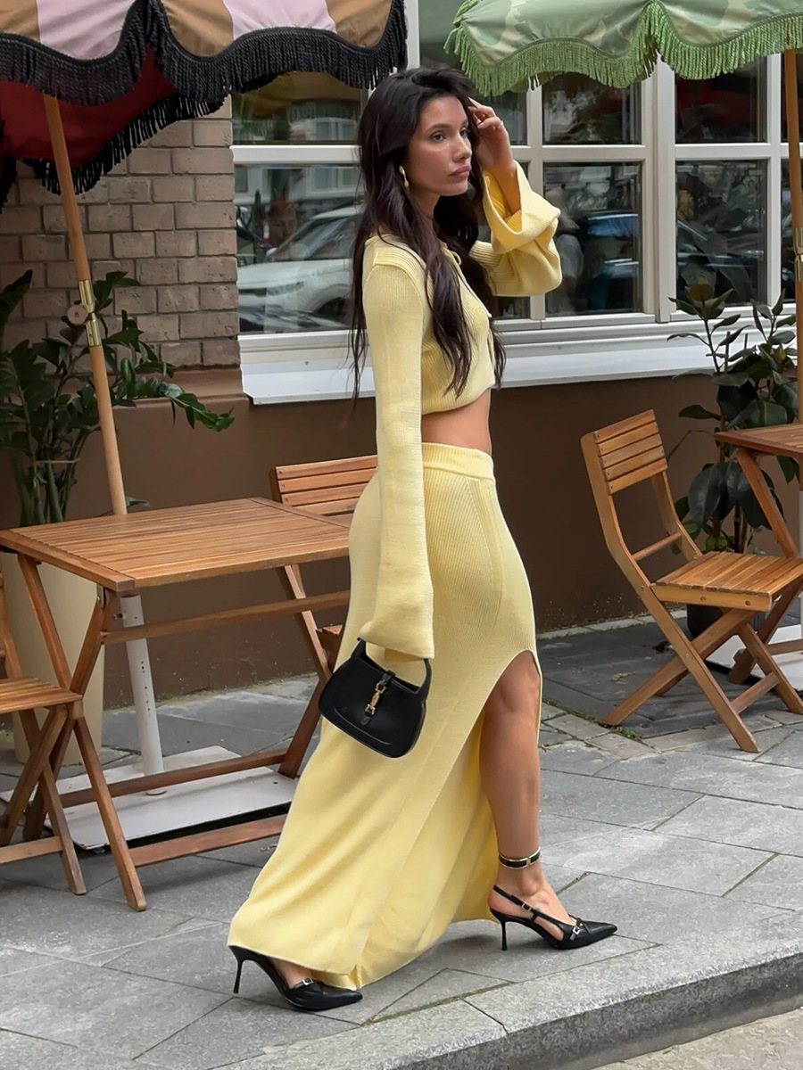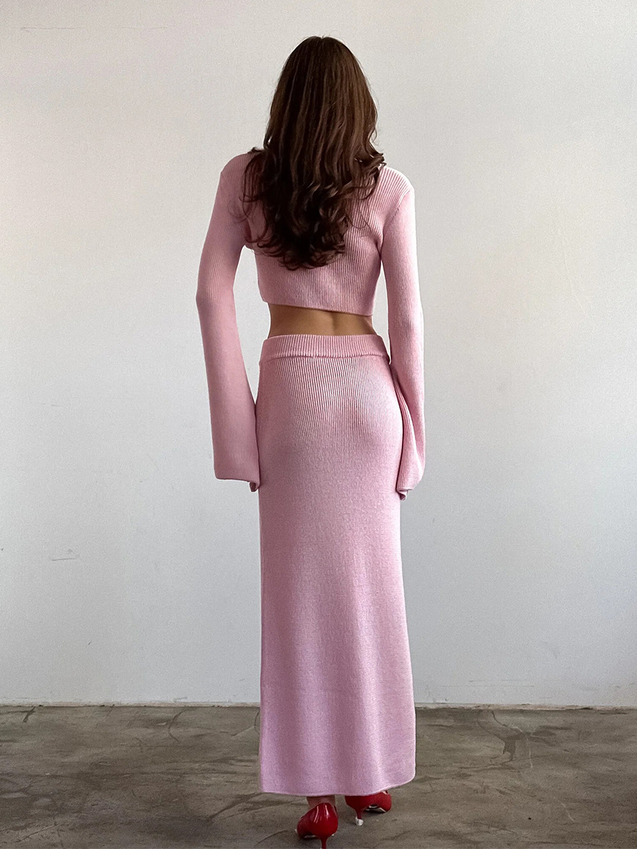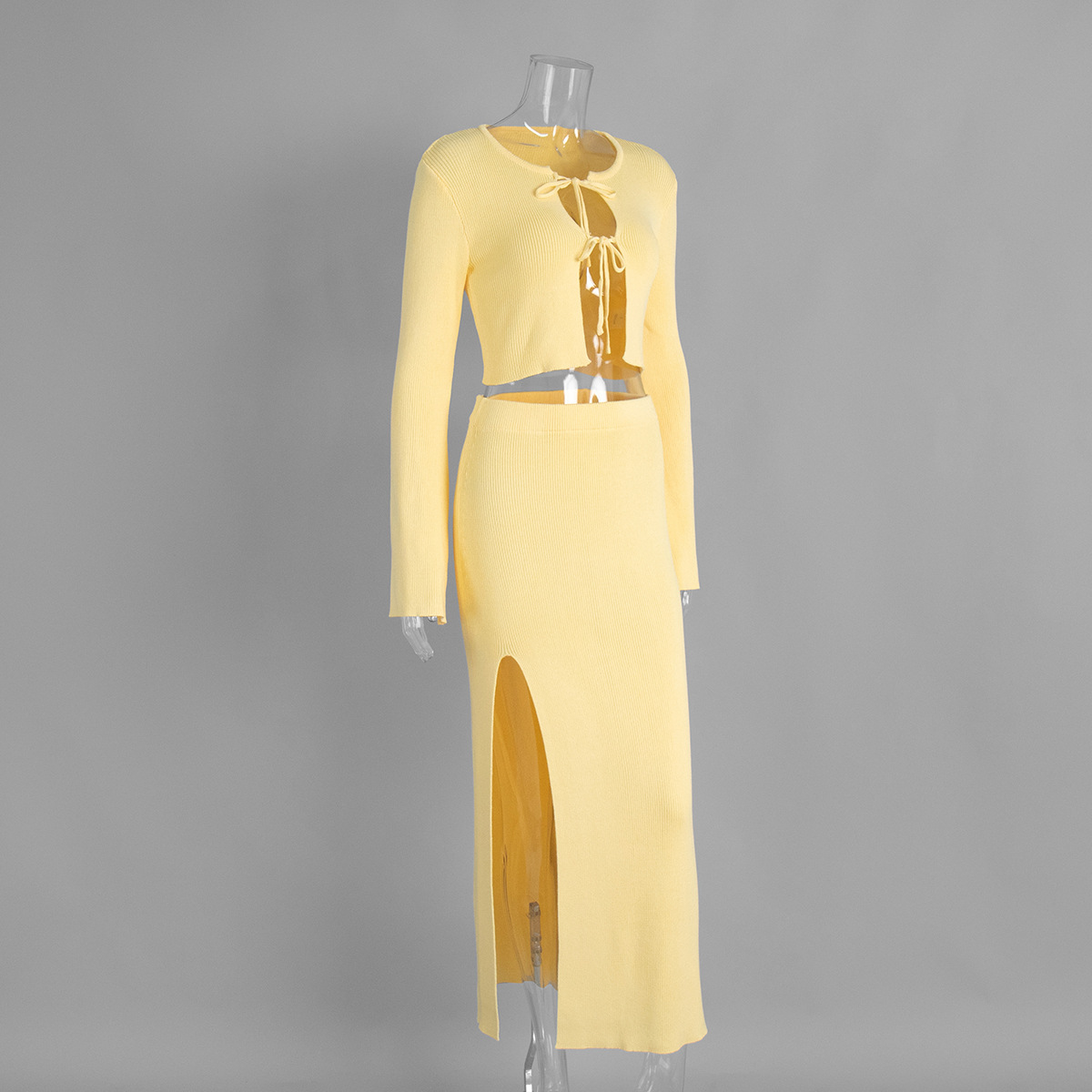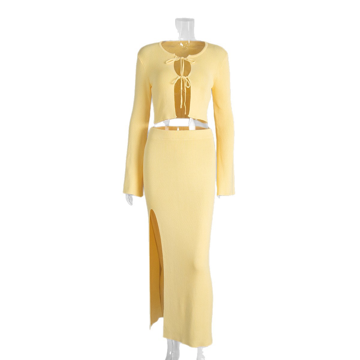 Cross-border Lace-up Long-Sleeve Midi Skirt Set European And American Style