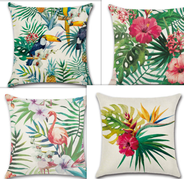 Cross Border New Tropical Flower Plant Flamingo Hibiscus Flax Pillow