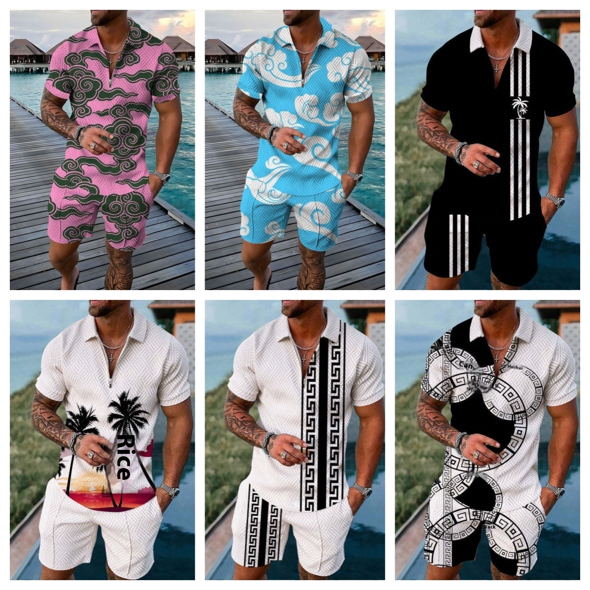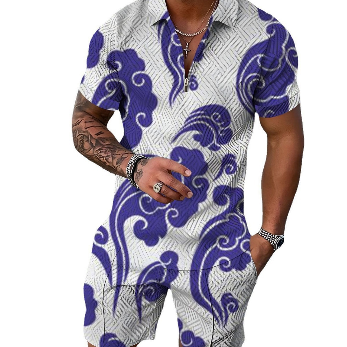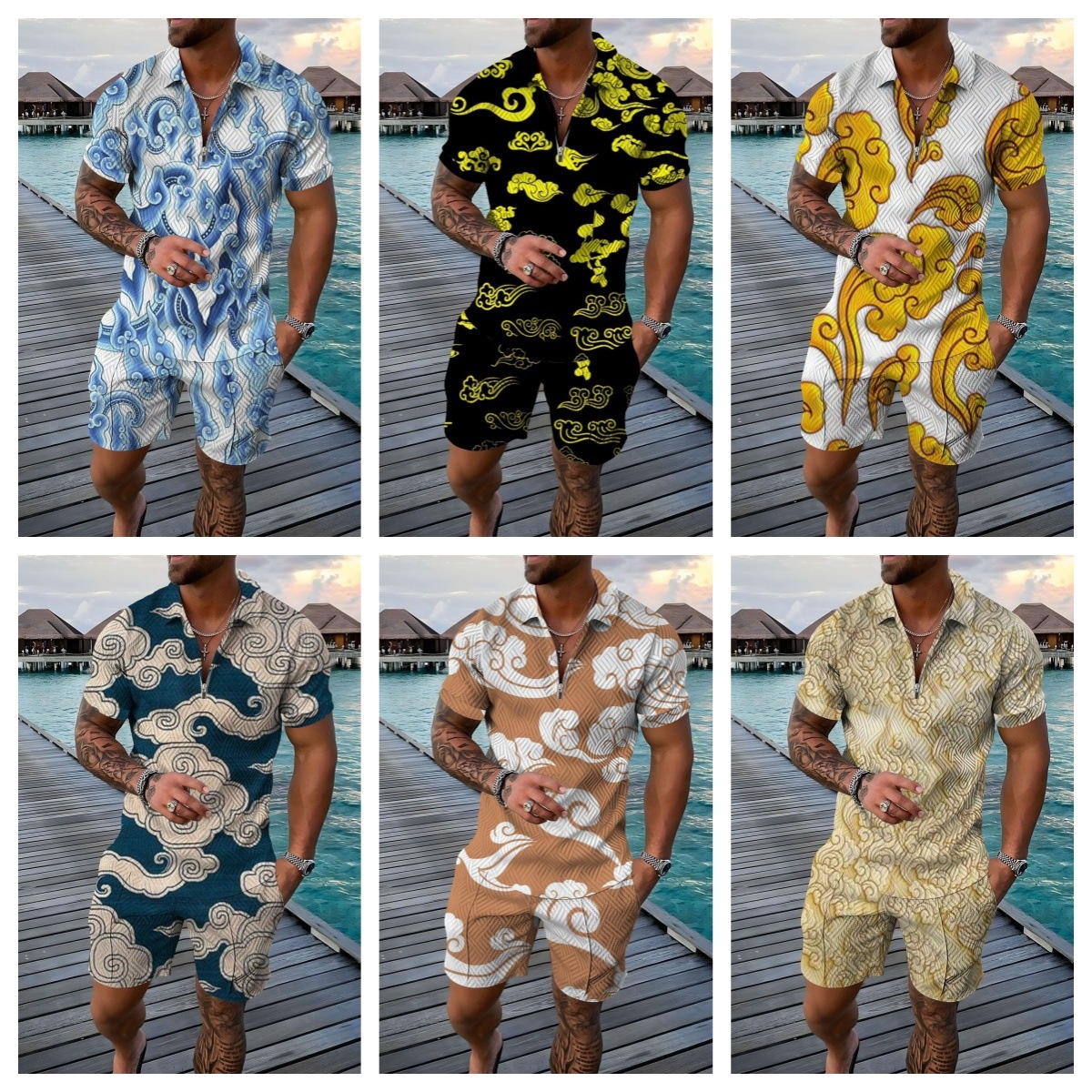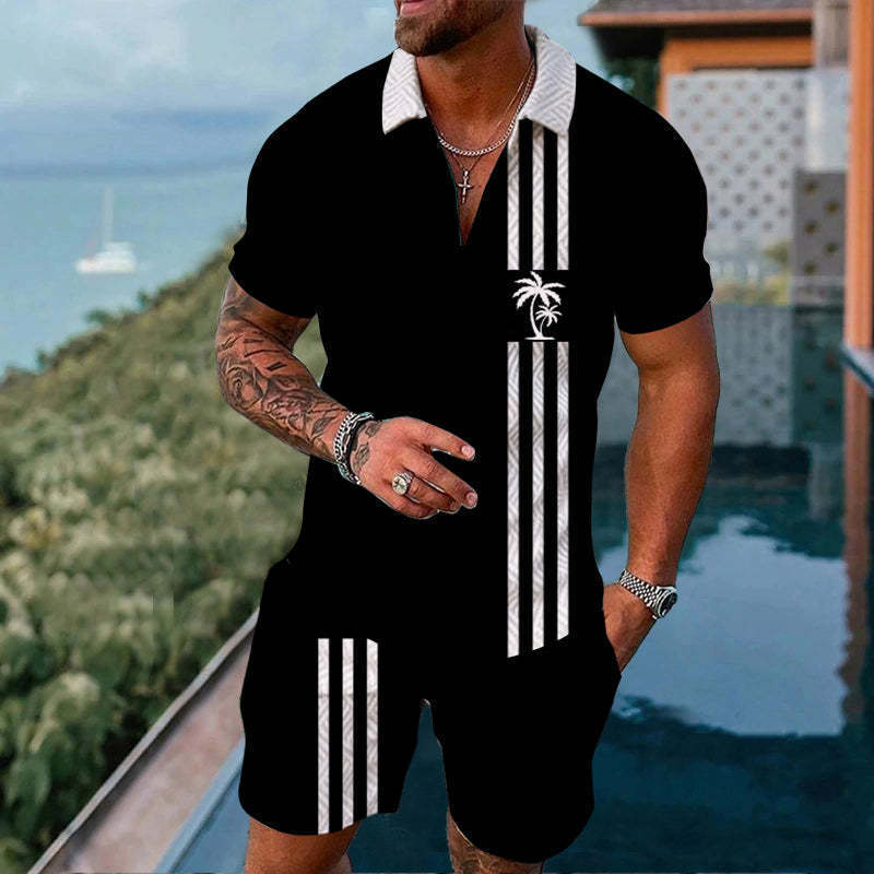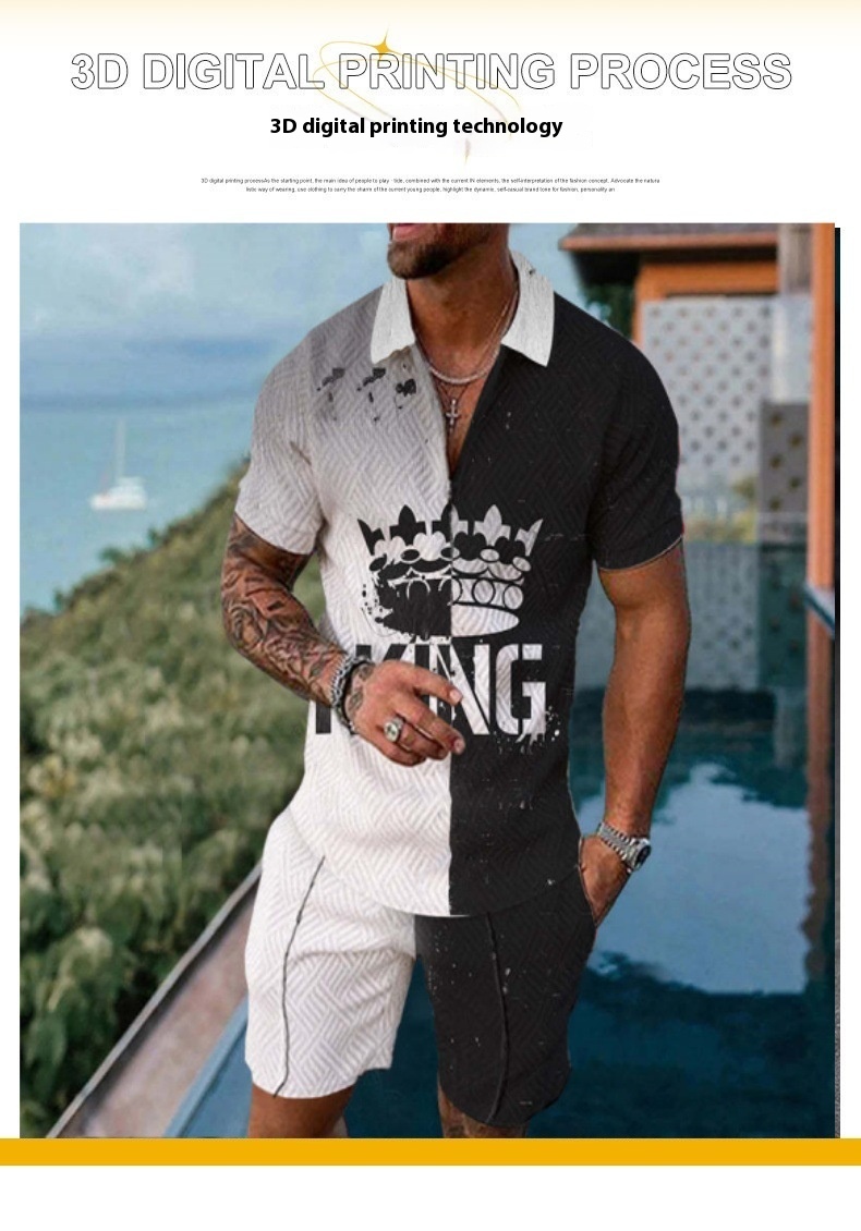 Cross-border Platform Summer 3D Printed Polo Short-sleeved Shorts Suit European And American Style Men's Hawaii 2-piece Set