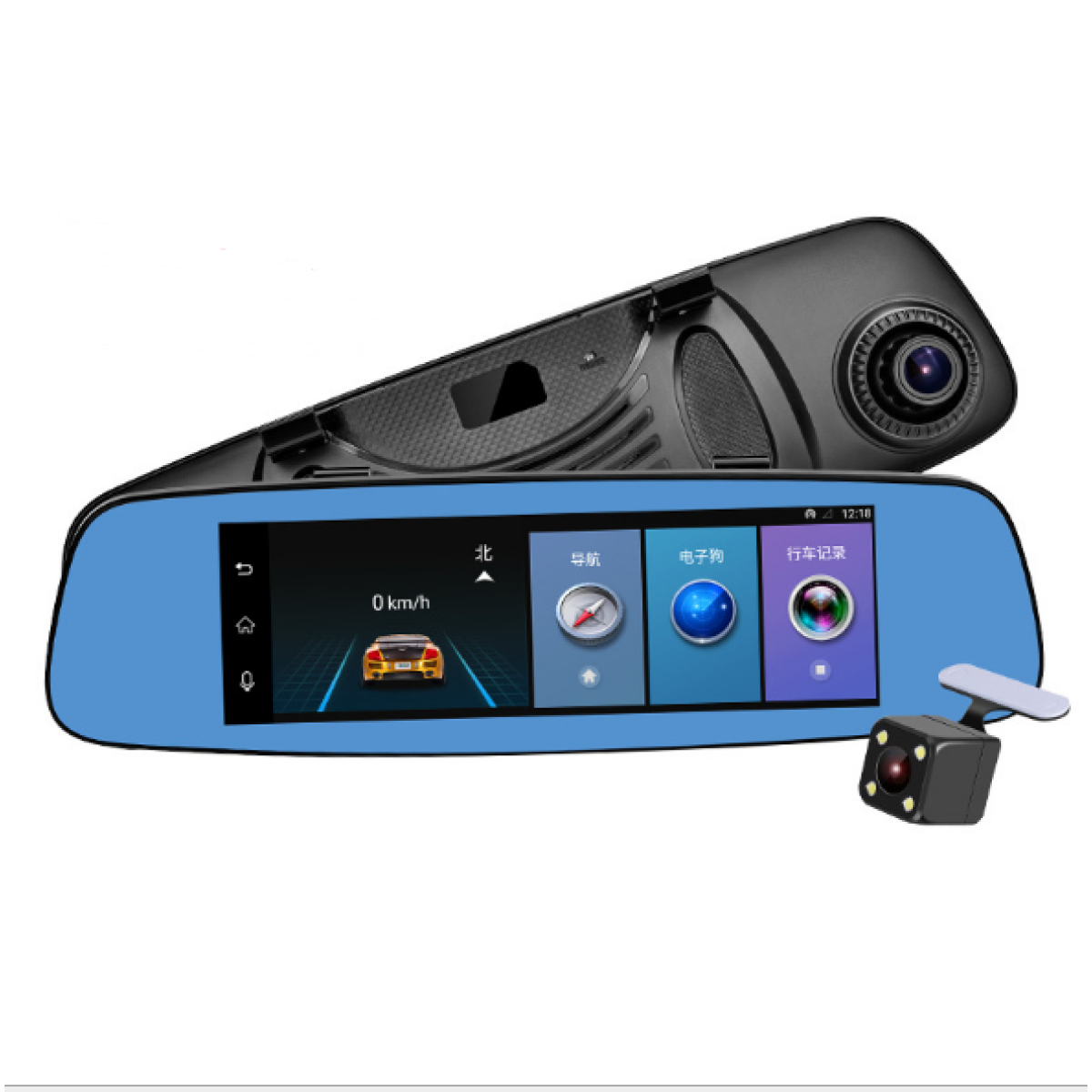 4G version +8 inch large screen touch+|MTK6735 quad-core CPU+ track offset+front car collision warning+Android navigator rearview mirror+Bluetooth hands-free call+front and rear driving recorder+reverse rear view camera, body built-in 16G+ support multi-languauge