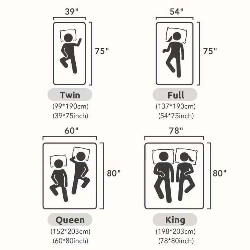 Dimensions: 99x190cm, 137x190cm, 152x203cm, 198x203cm