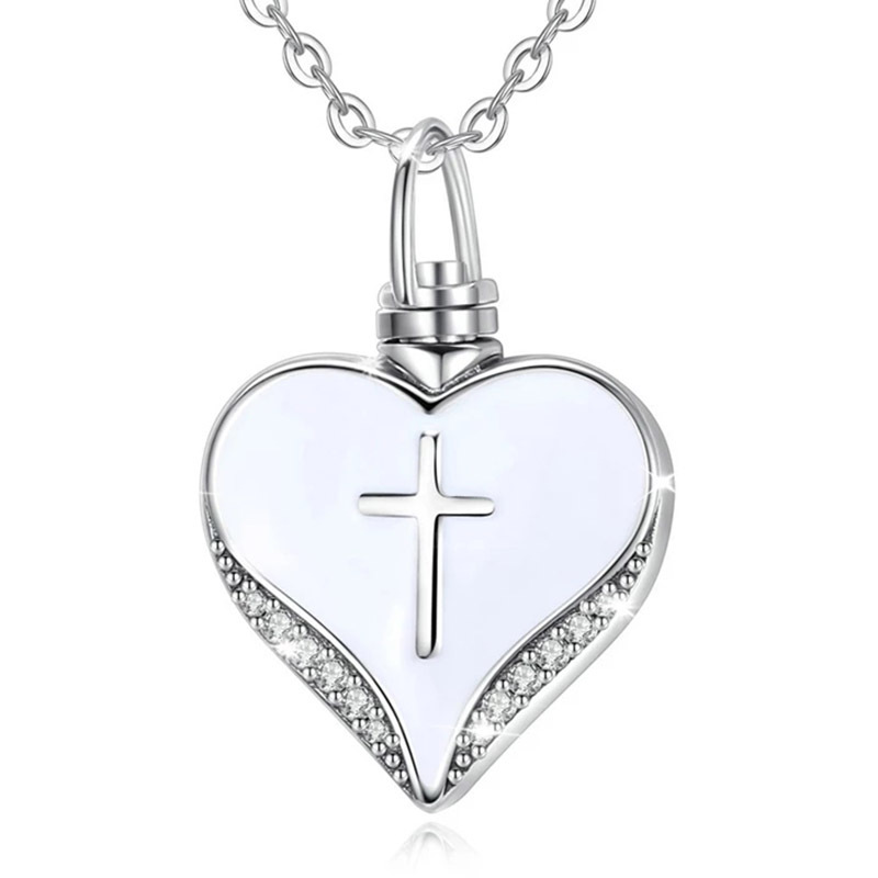 Cross Diamond Heart-Shaped Cremation Necklace