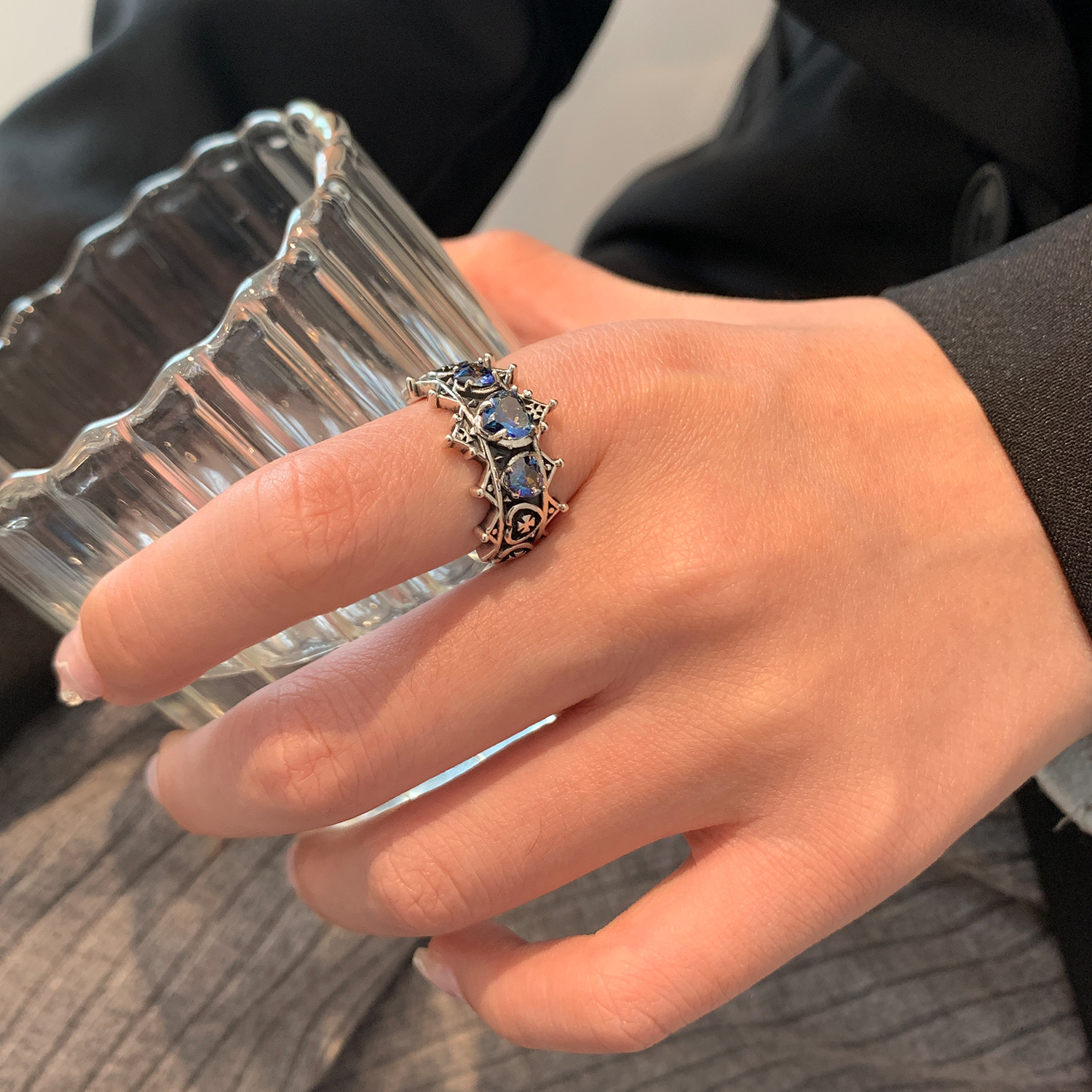 Color: purple diamond ring (copper plated with Thai silver), blue diamond ring (copper plated with Thai silver)