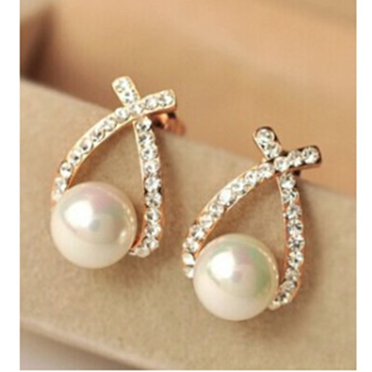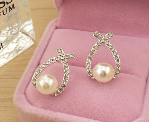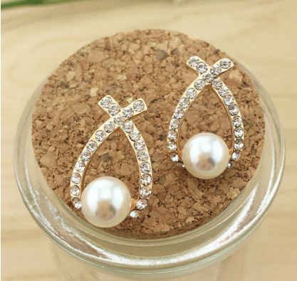 Cross pearl flash drill earrings