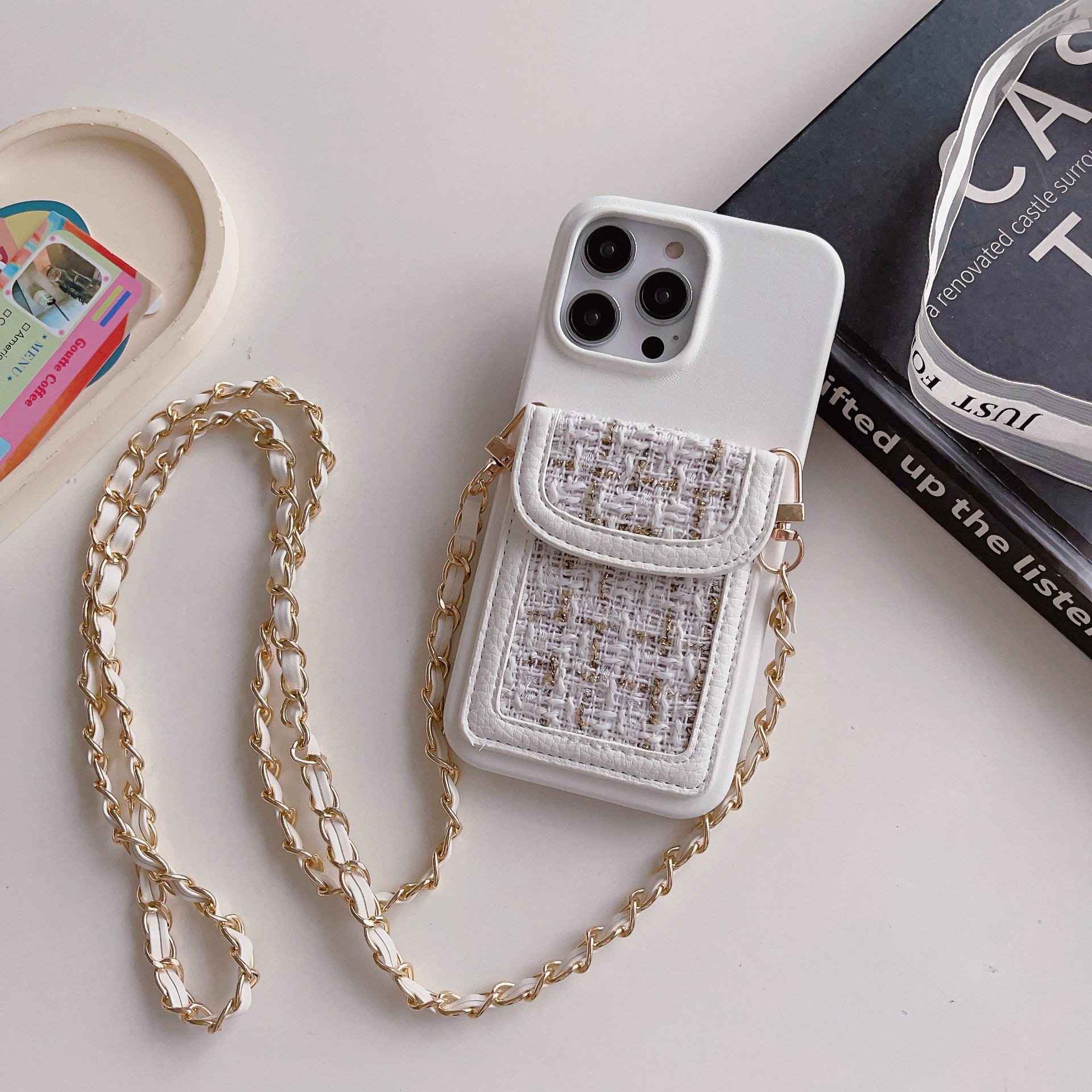 Color: Black woven card-crossbody leather chain, white woven card-crossbody leather chain, green woven card-crossbody leather chain, purple woven card-crossbody leather chain, light khaki woven card crossbody leather chain