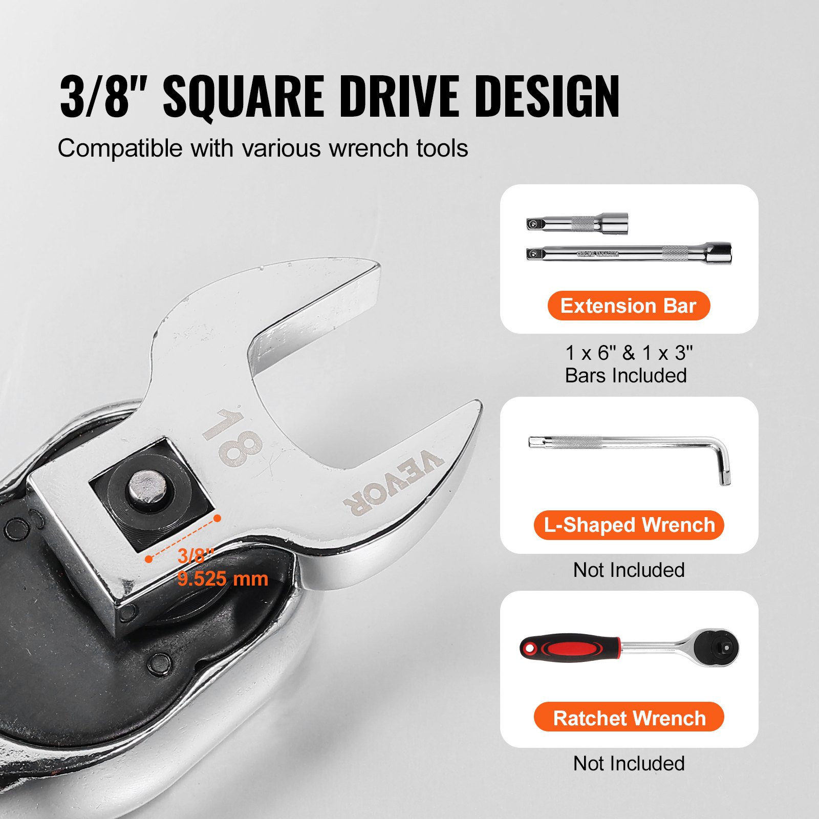 VEVOR Crowfoot-Schlüsselsatz, 9,525 mm Antrieb, 20-teiliger Crowsfoot-Schlüsselsatz mit 2 Verlängerungsstangen und EVA-Werkzeug-Organizer, SAE 3/8-2.22cm und metrisch 10-22mm, 40CR-Material