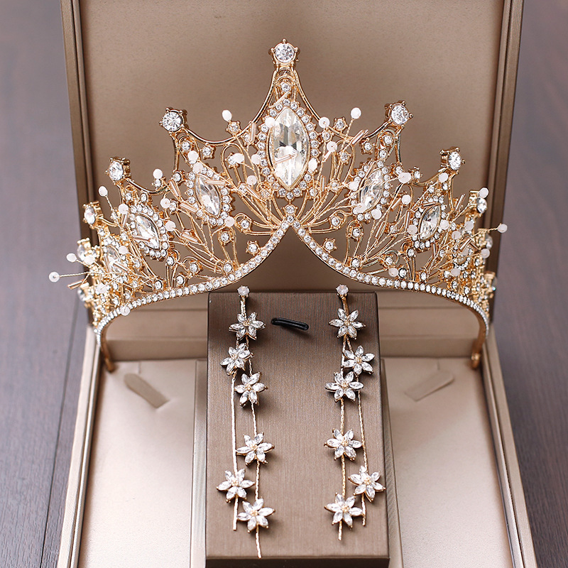 Style 2: Crown gold+necklace+earrings with ear holes
