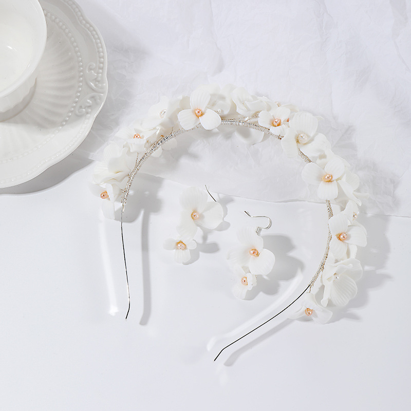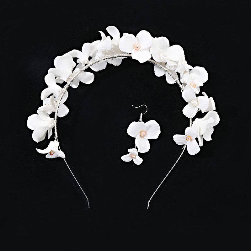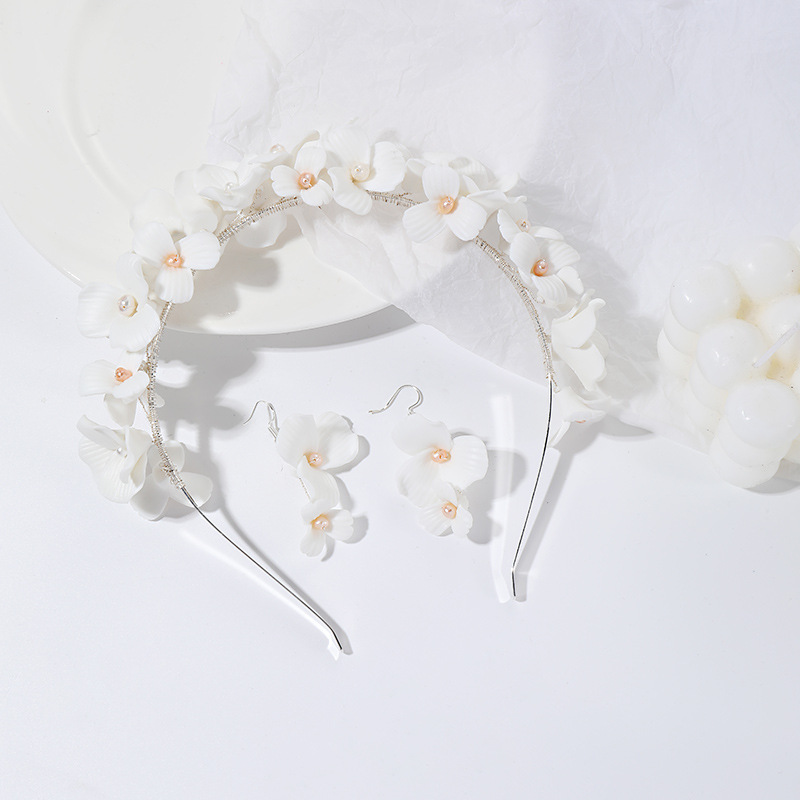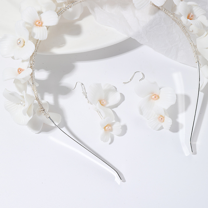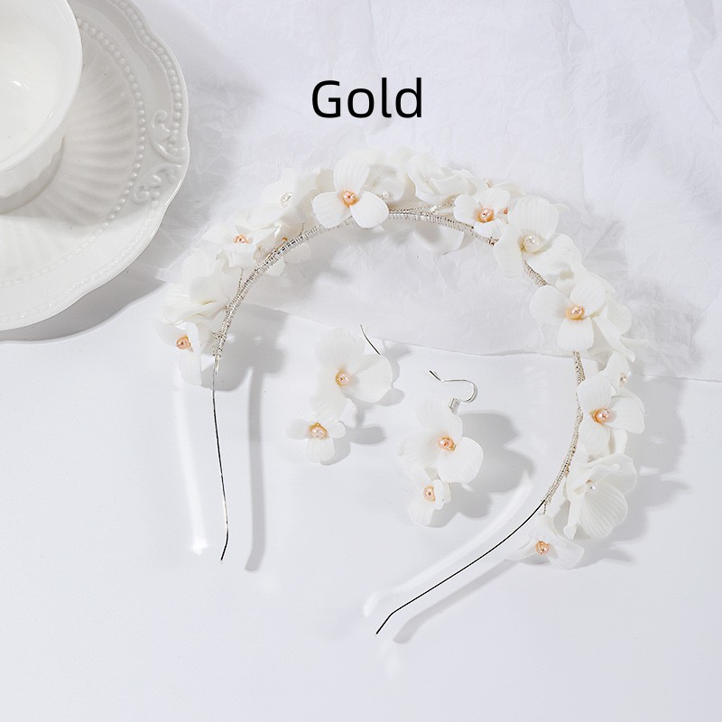 Product information :Material: ceramicsColor: silver, goldPopular elements: pearlsPacking list:Hairband *1, a pair of earrings