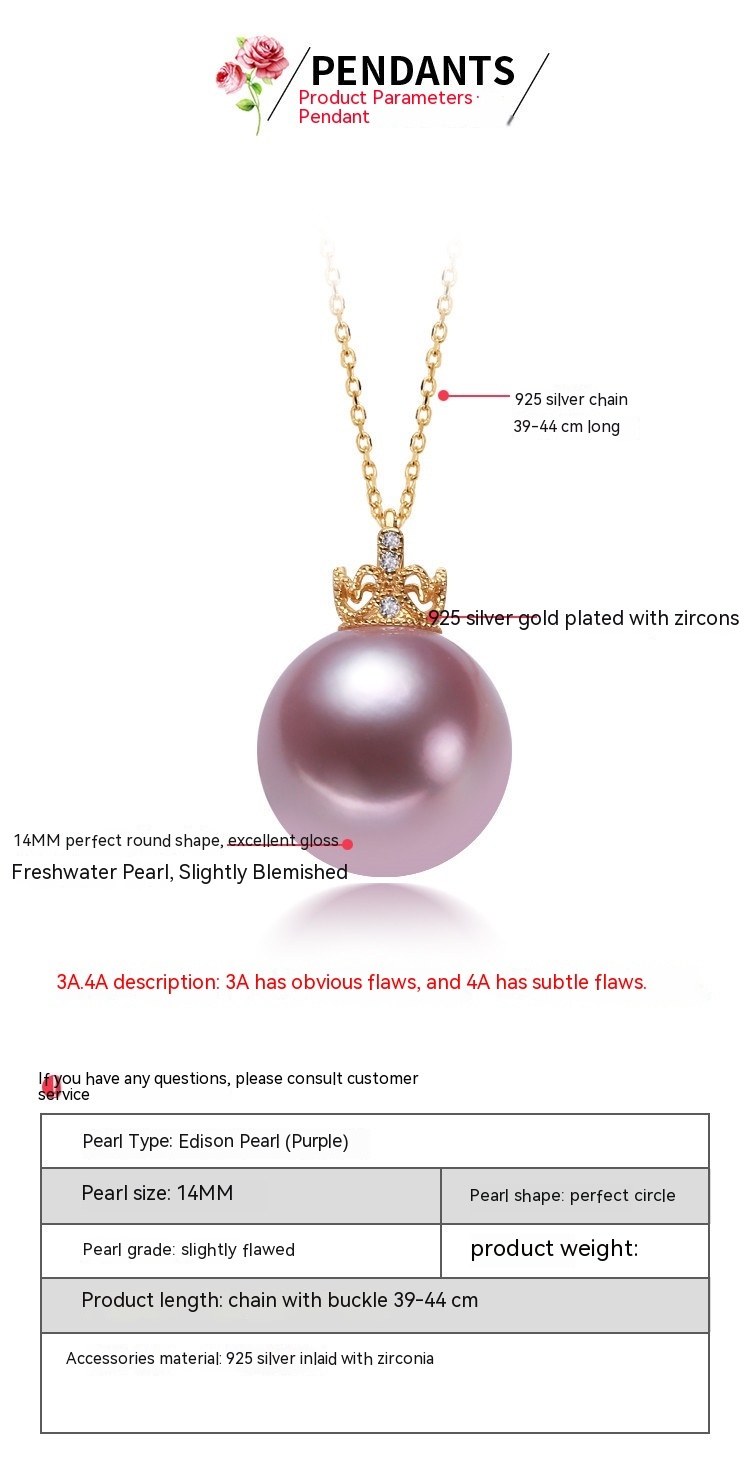 Crown Silver 925 Silver Pendant Pearl Necklace