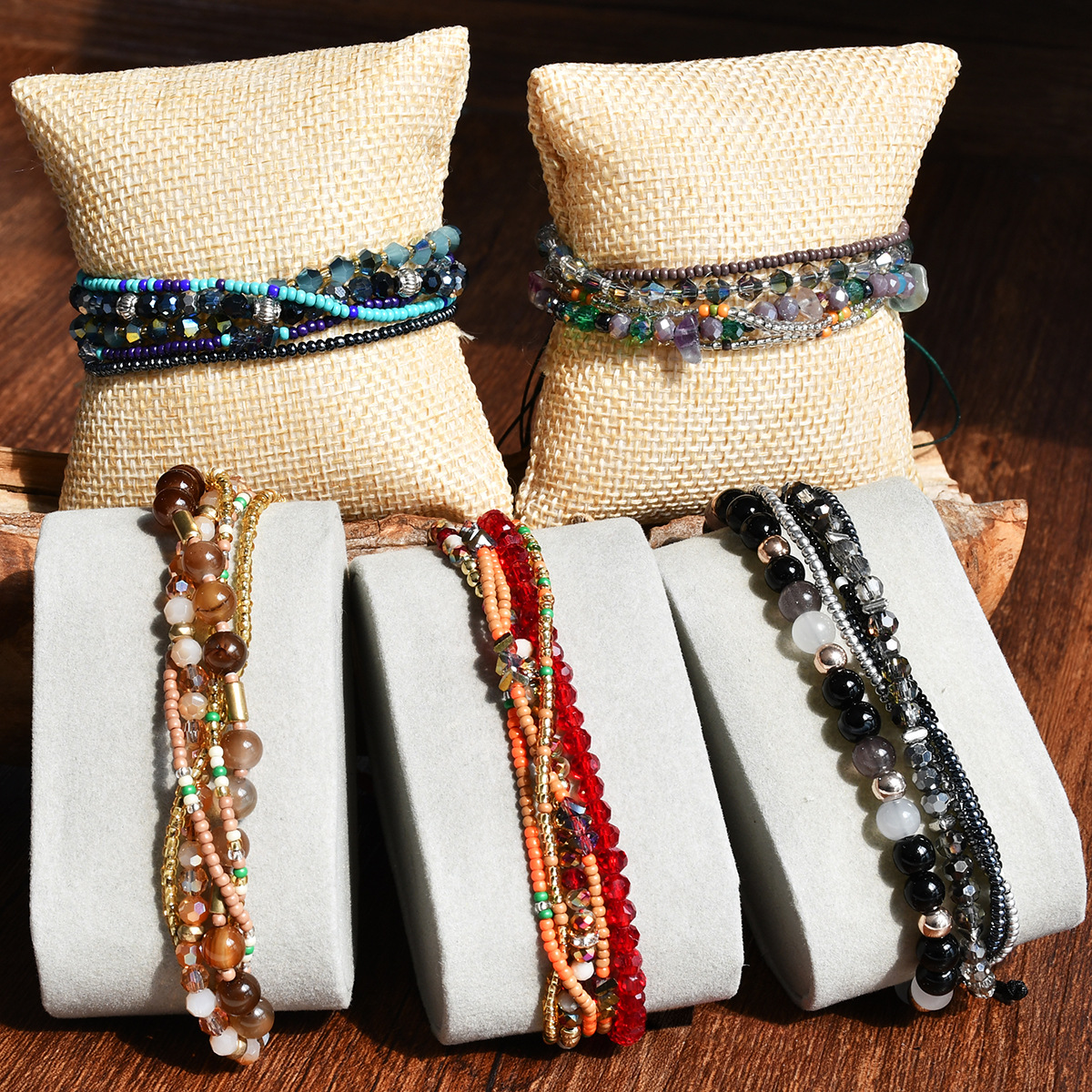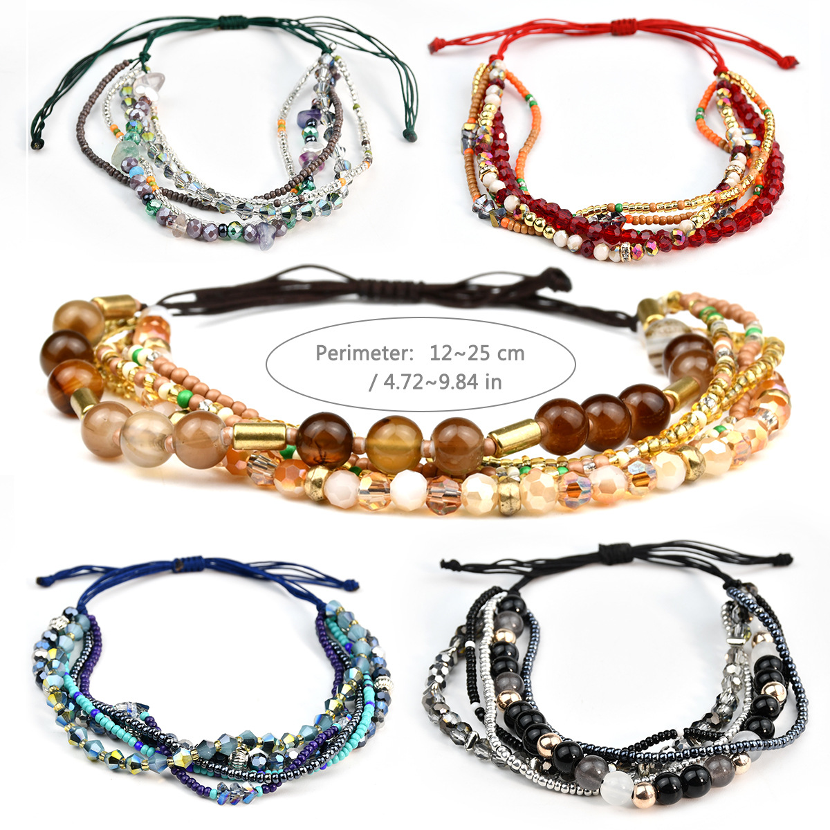 Material: Natural gravel + millet beads + crystal + braided rope