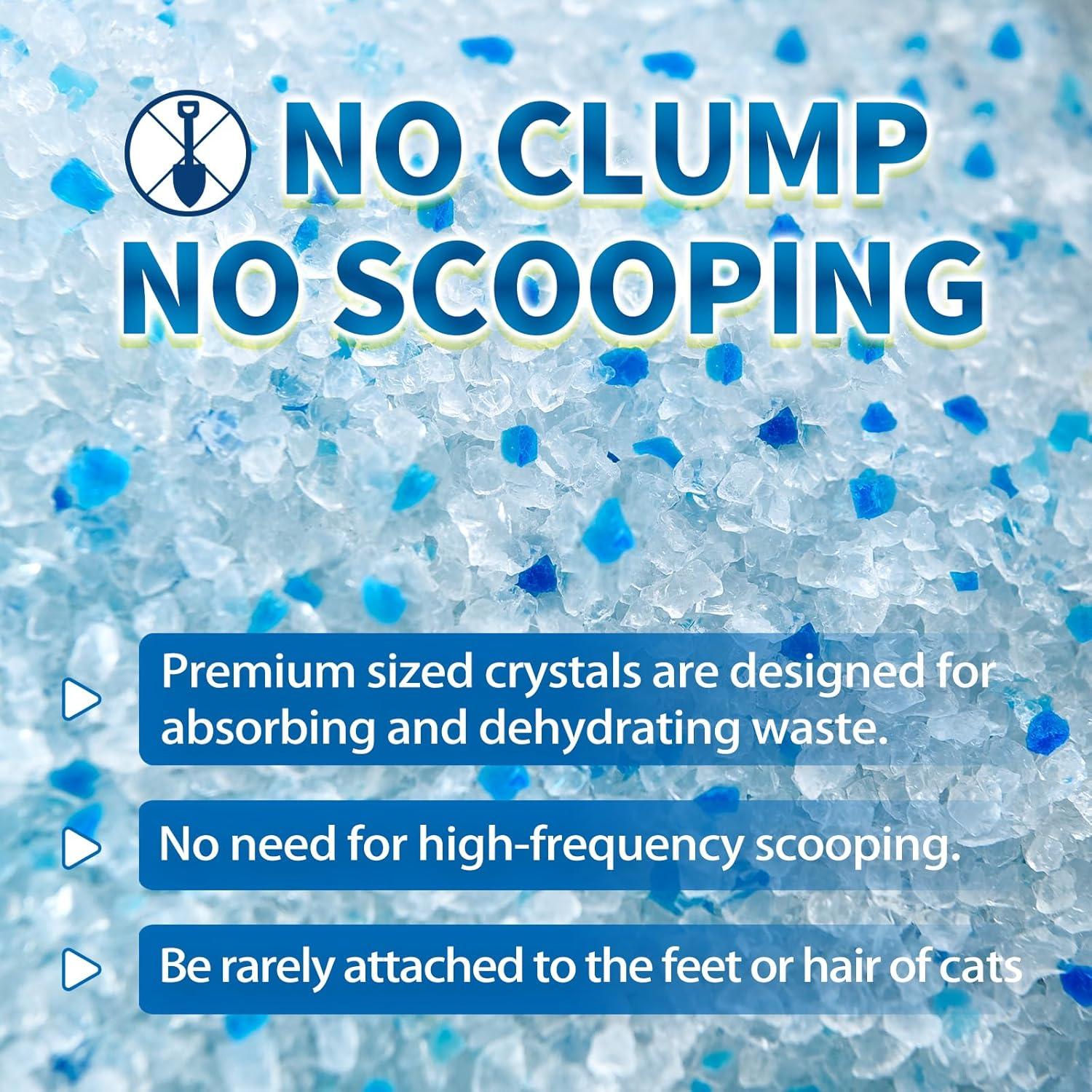 Minimal tracking and dust elimination: Our kitty litter crystals are formulated to reduce tracking and are 99% dust-free, promoting a cleaner environment for you and your feline friend without any clumping,so needn't any scrooping.