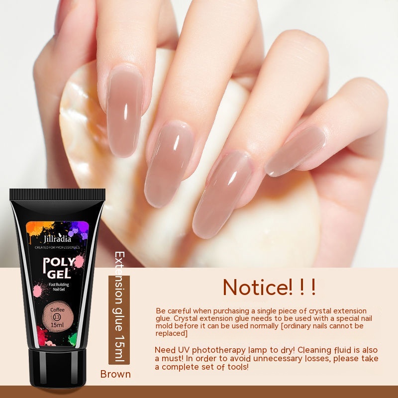 Color: Crystal lengthened glue No. 1 (light pink) 15ML, Crystal expansion glue No. 2 (white) 15ML, Crystal expansion glue No. 3 (cinnamon) 15ml, Crystal expansion glue No. 4 (nude pink) 15ML, Crystal expansion glue No. 5 (transparent color) 15ML, Crystal expansion glue No. 6 (Milky White) 15ML, Crystal expansion glue No. 7 (nude color) 15ML, Crystal expansion glue No. 8 (rose color) 15ML, Crystal extended glue No. 9 (Barbie pink) 15ML