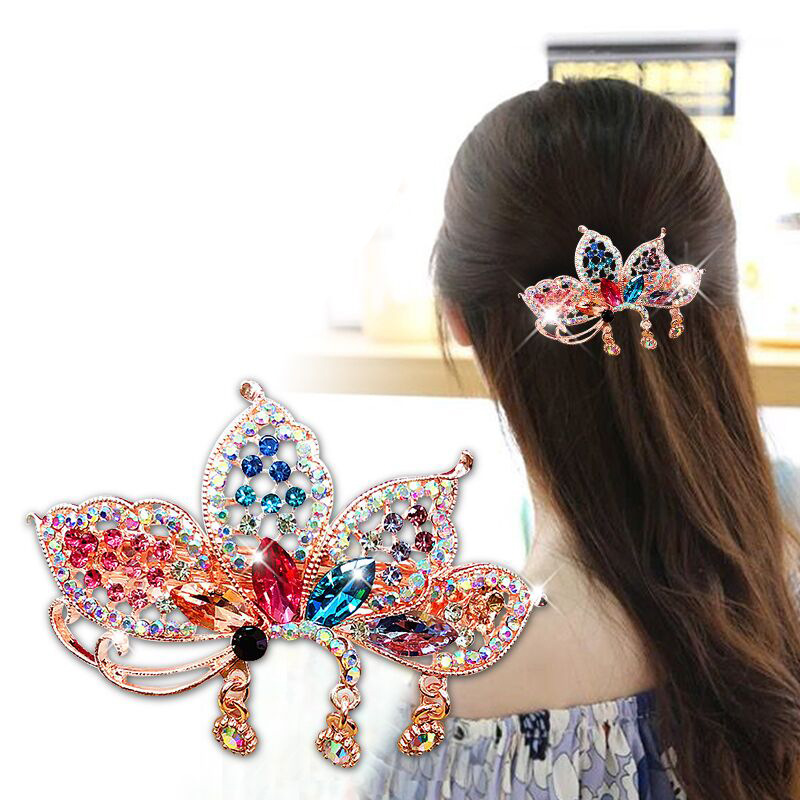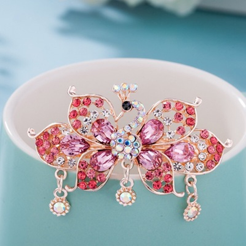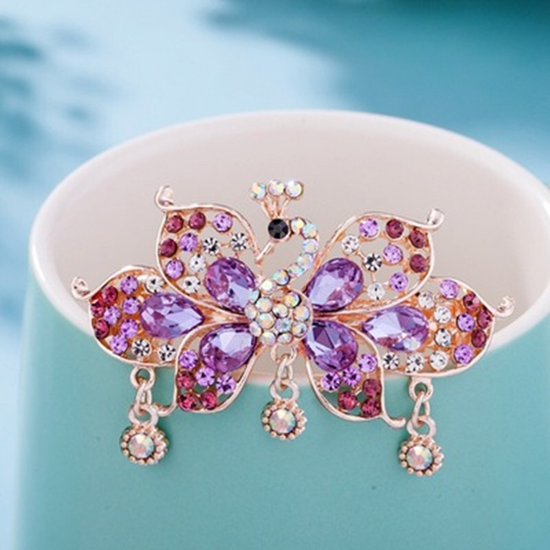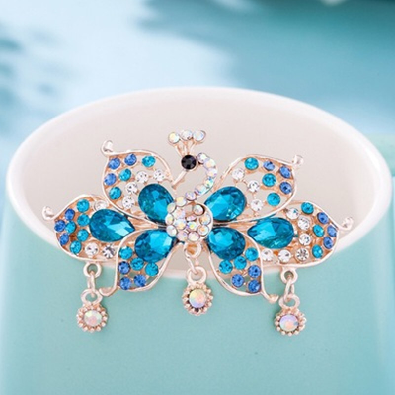 Crystal Inlaid Diamond Spring Horsetail Hairpin Peacock Hairpin