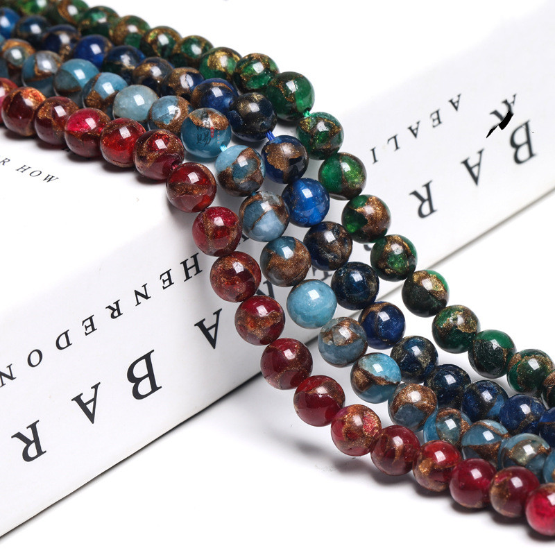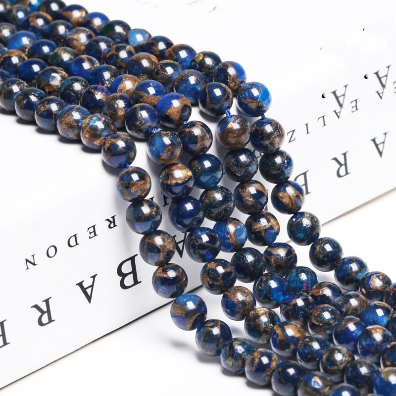 Crystal Jewelry Blue Gold Ornamental Stone Scattered Beads Diy Nepal Cloisonne Round Beads Full Of Gold Sand Flowing