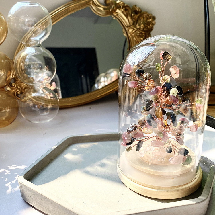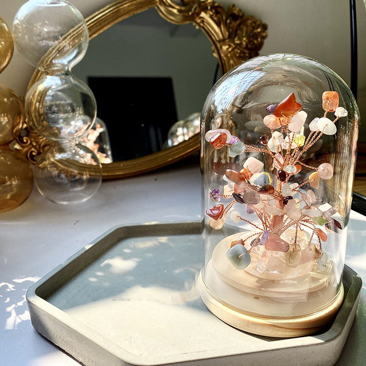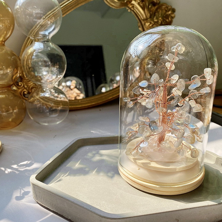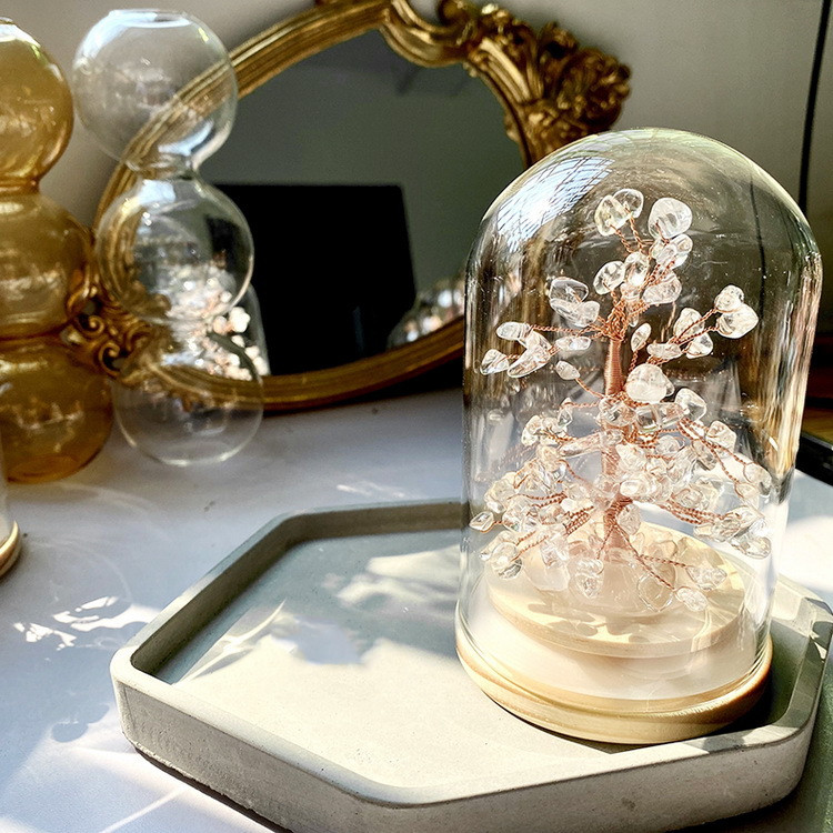 Material: natural crystal/wooden base/glass cover