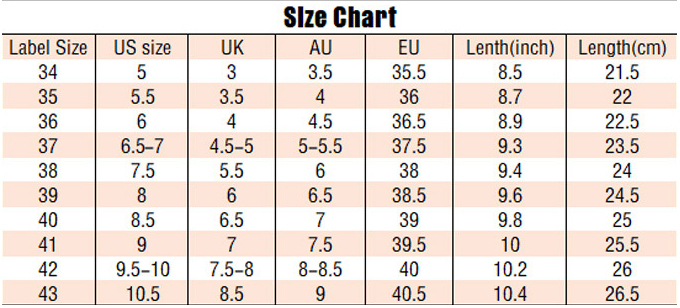 Size: 34, 35, 36, 37, 38, 39, 40, 41, 42, 43, 44, 45, 46