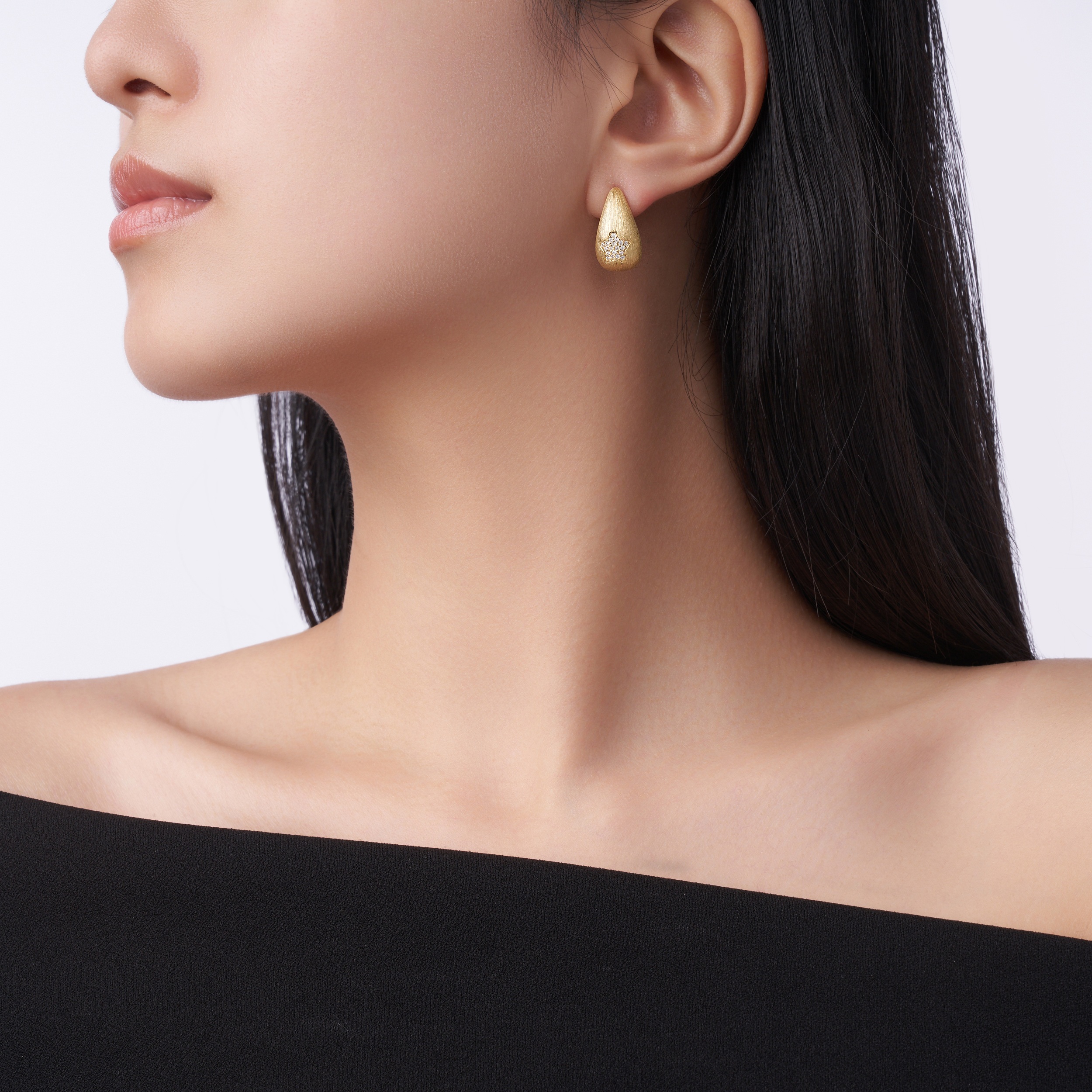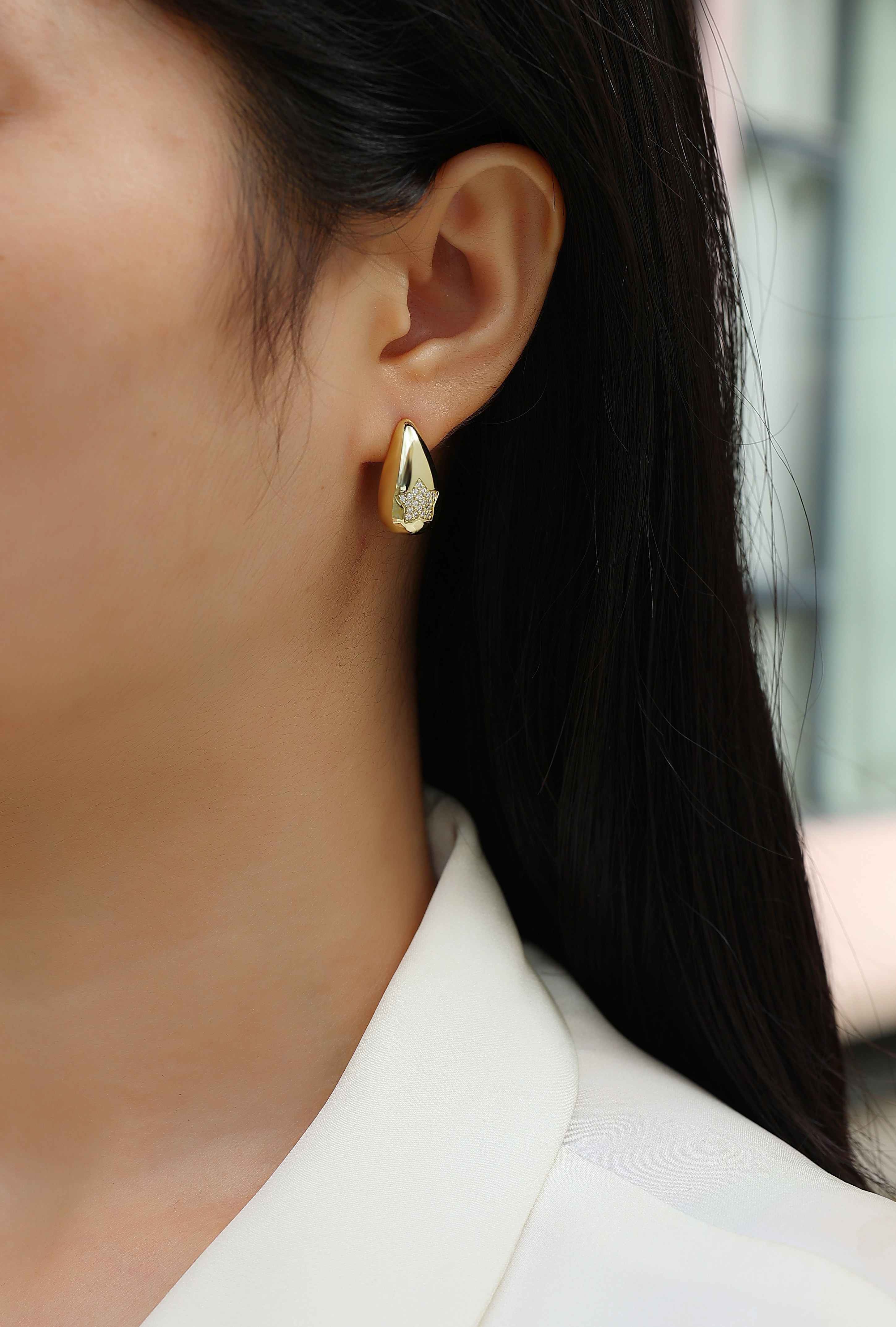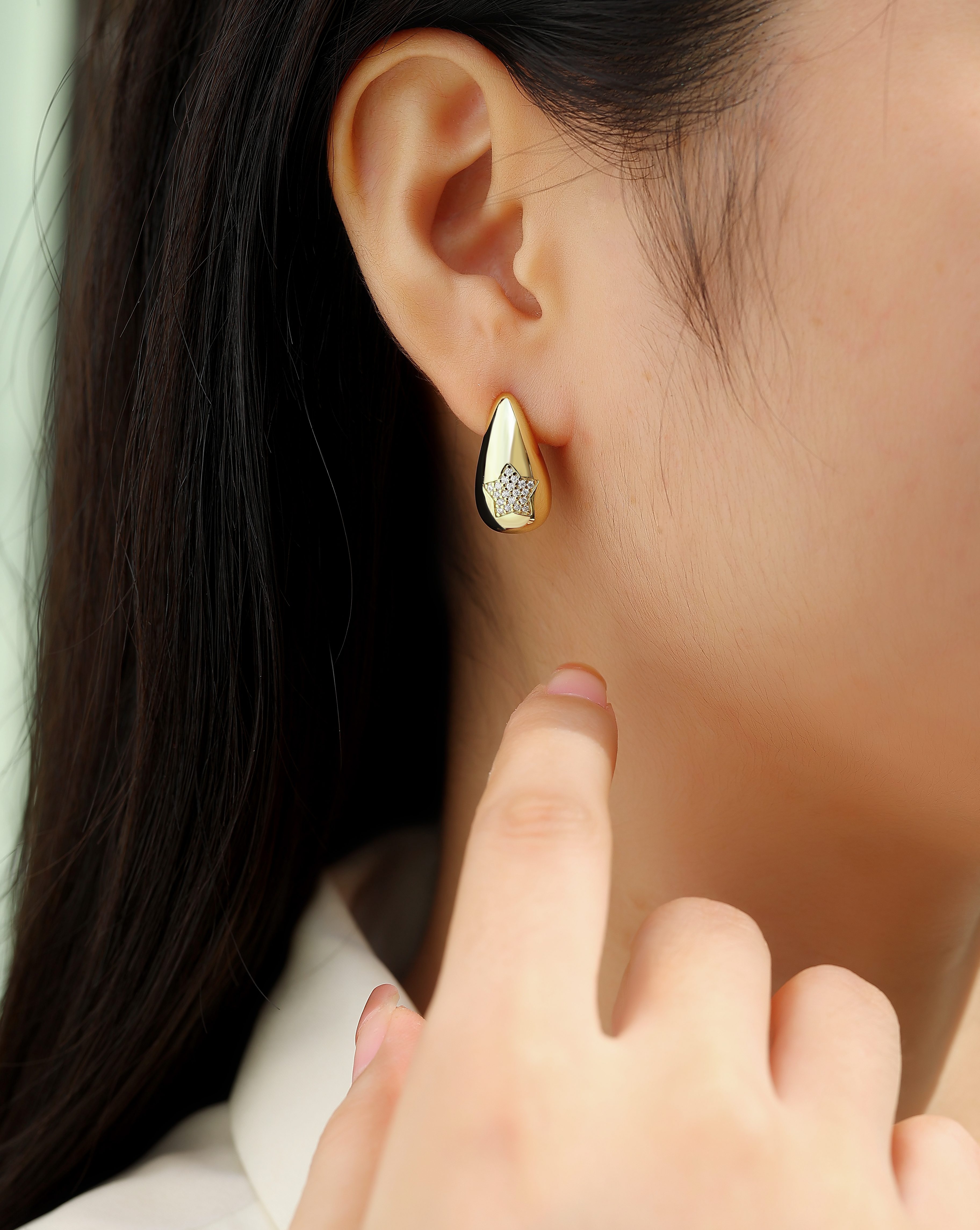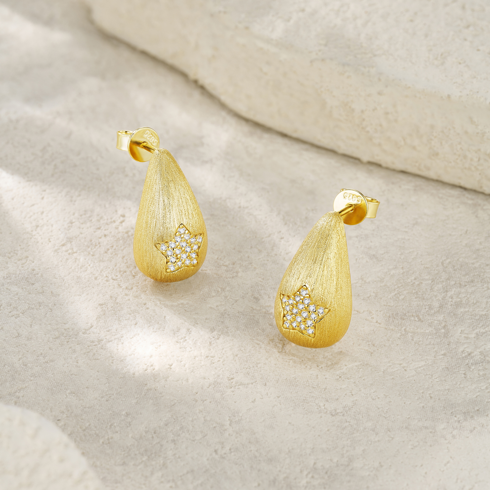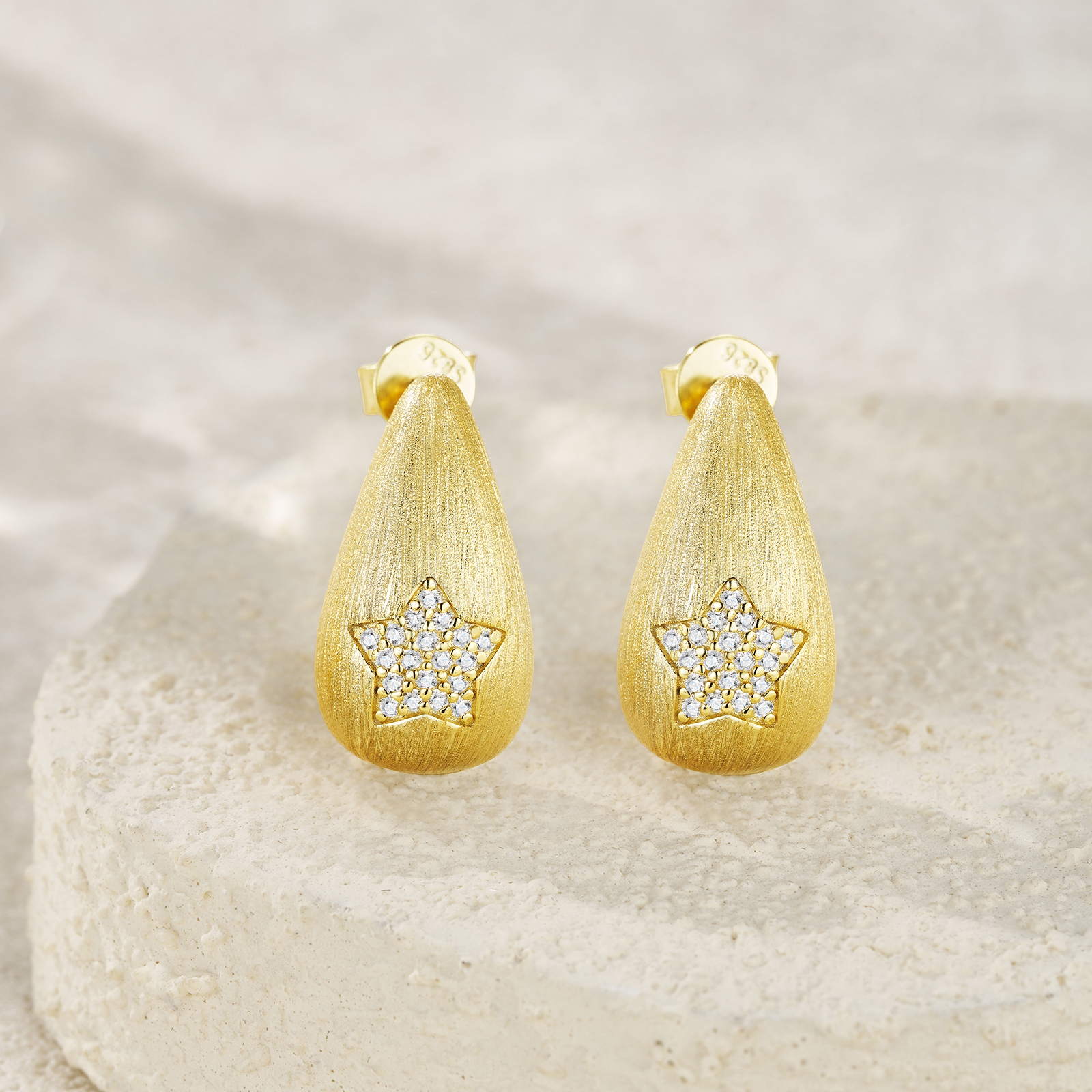 Crystal Stars - Premium Moissanite Luxury, Fashionable And Light Luxury Jewelry, Silver Stud Earrings, S925 Silver Plated With Gold