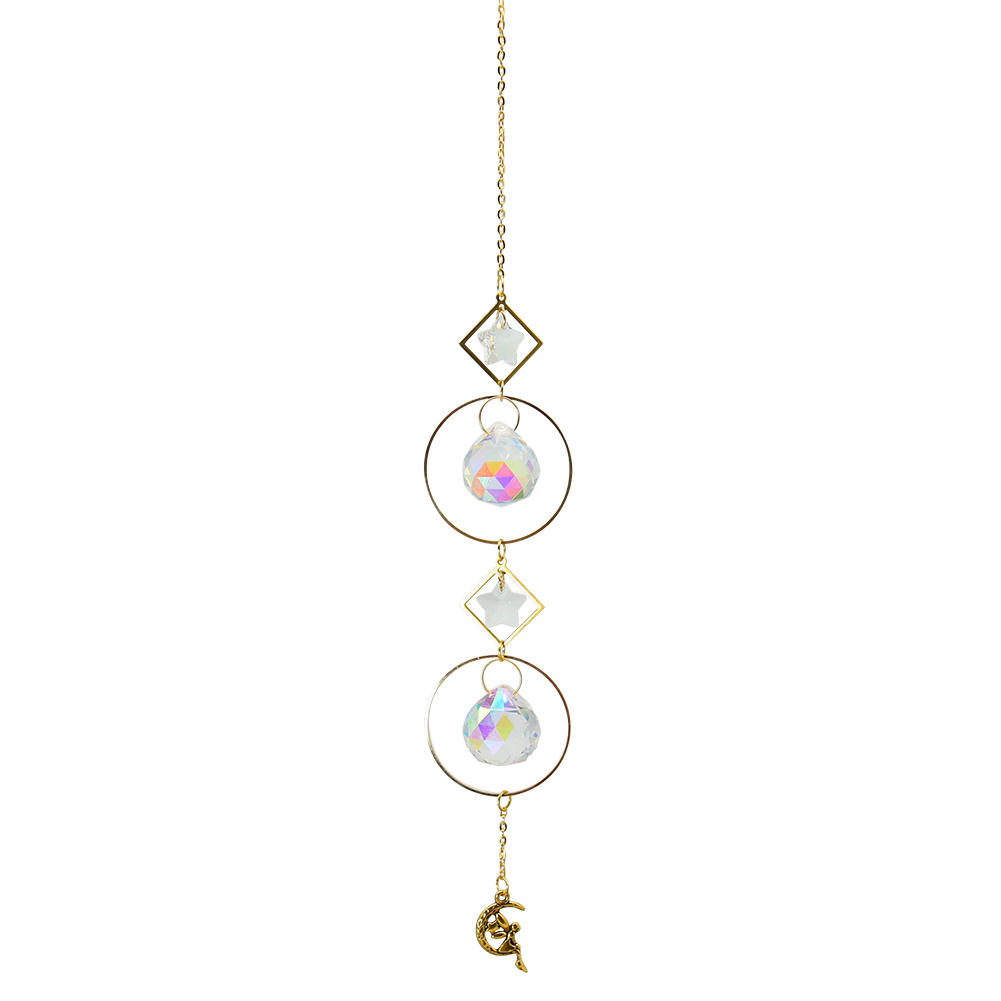 2. Designed these with a shiny hand polished brass crescent moon and two 20mm cut-glass prisms.
