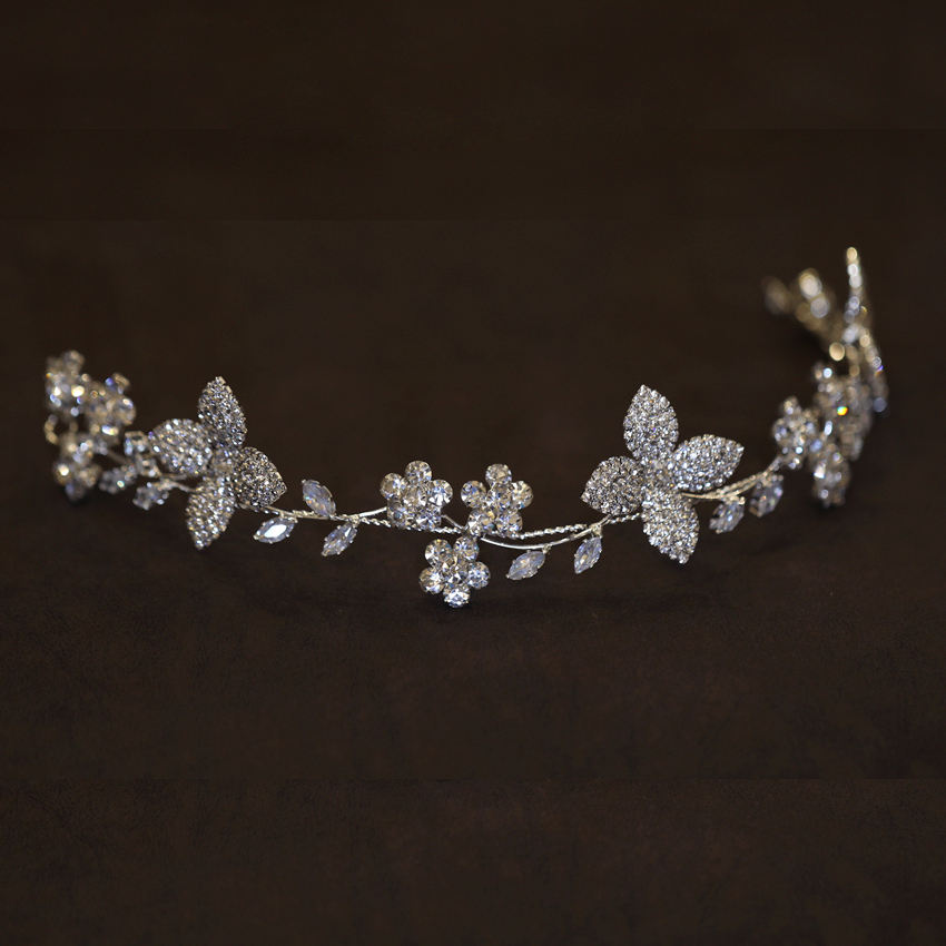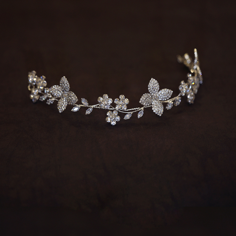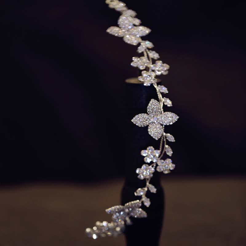Name: Zircon Flower Hair BandProduct Material: Water Diamond ZirconWeight: 30gColor: Gold Silver