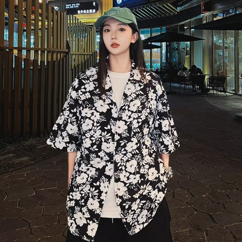 Cuban-collar Floral Shirt Thin And Loose-fitting