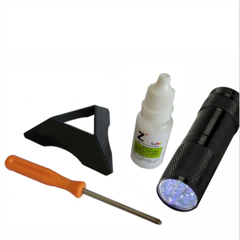 Material: plasticParts: three sets (screwdriver + small oil + base), four sets (screwdriver + small oil + base + Purple flashlight)