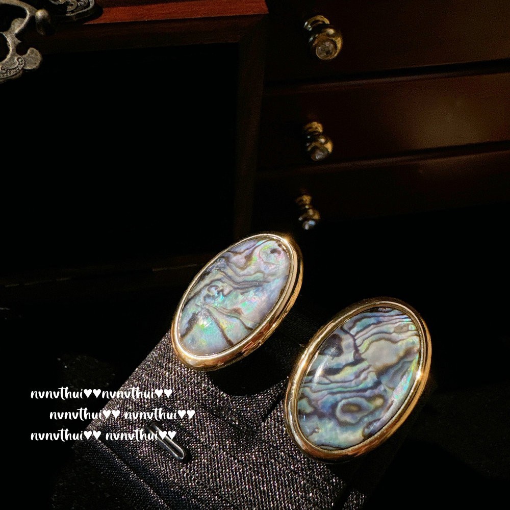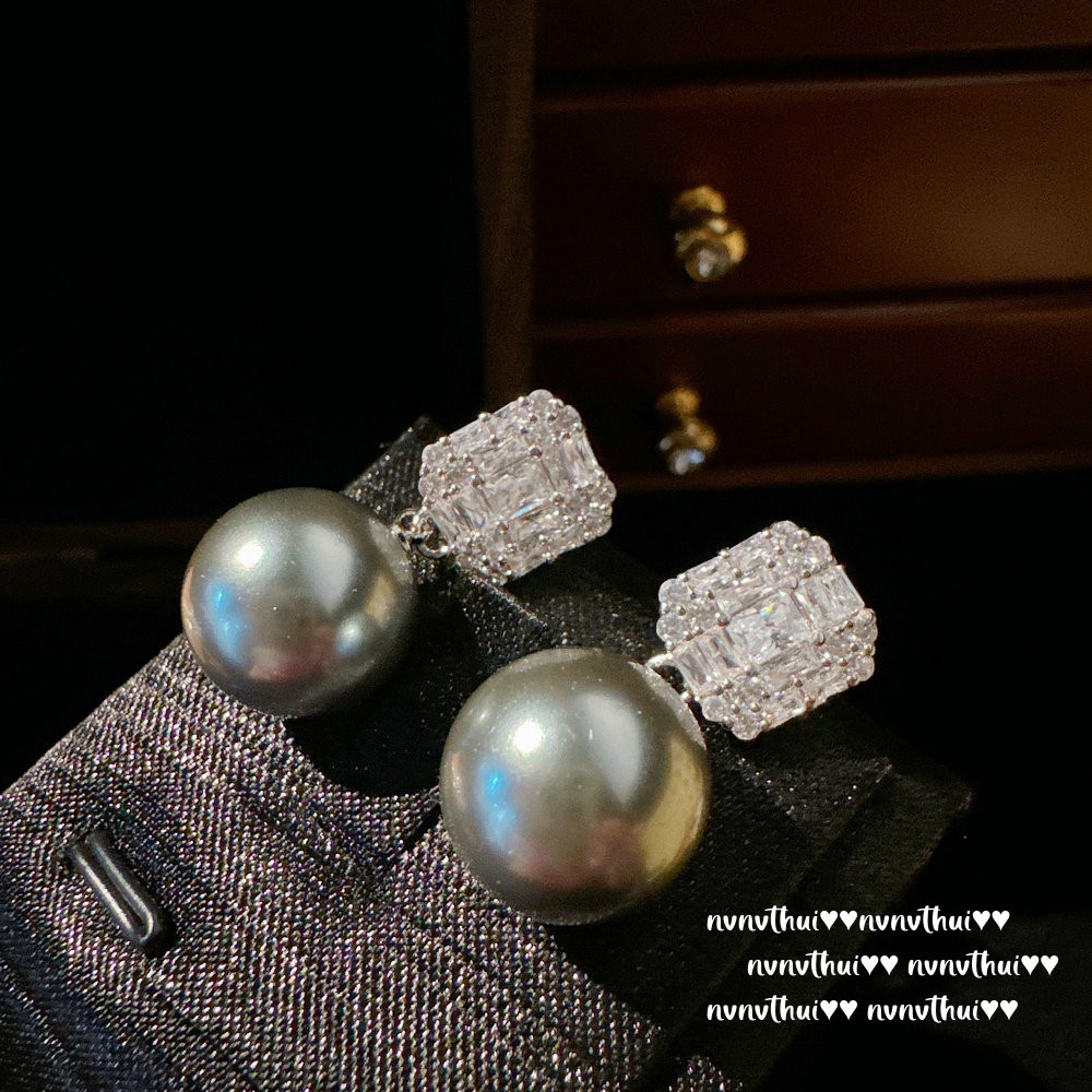 Cube Sugar Gem Real Hemp Gray Pearl Earrings Abalone Fritillary