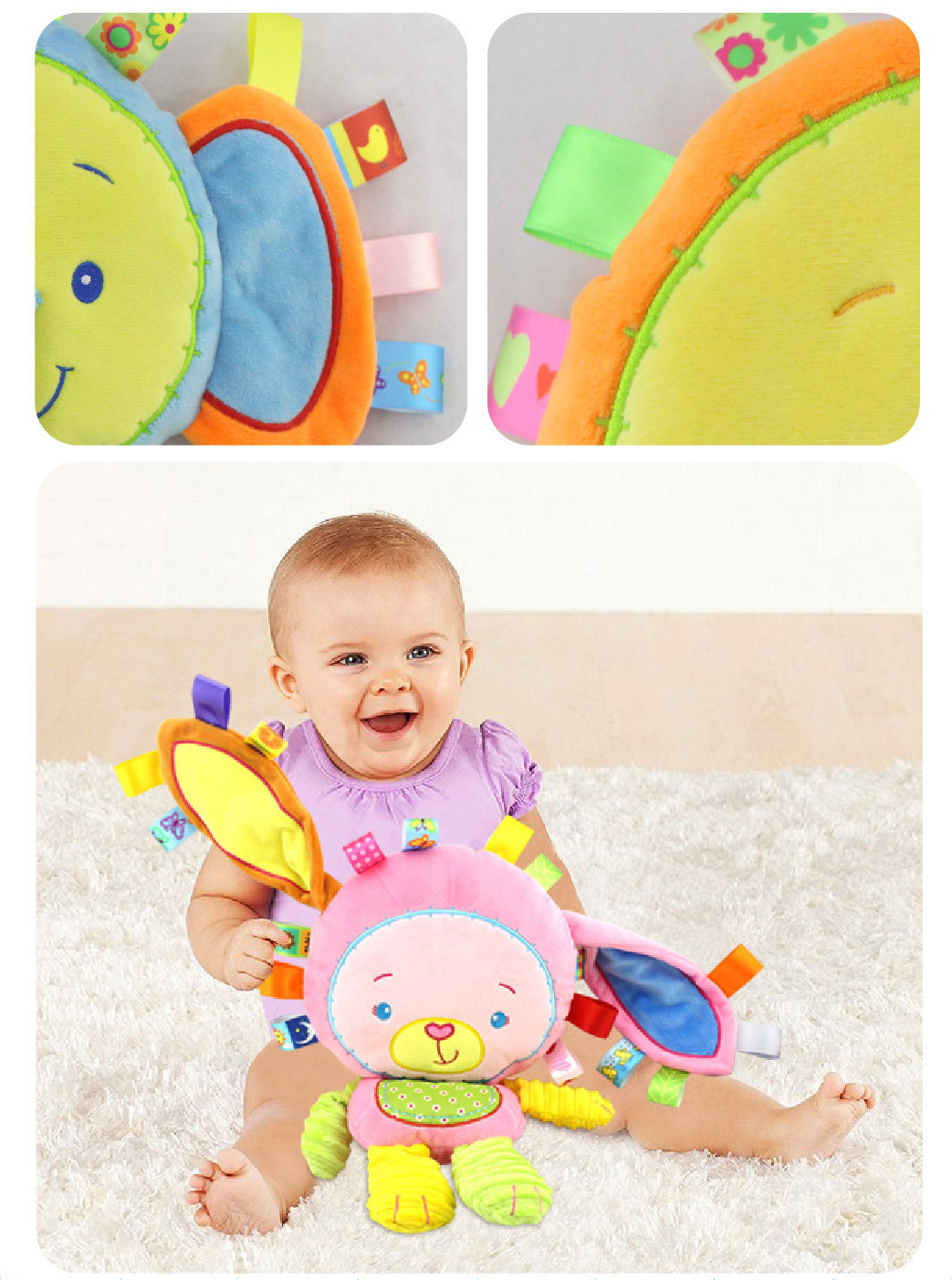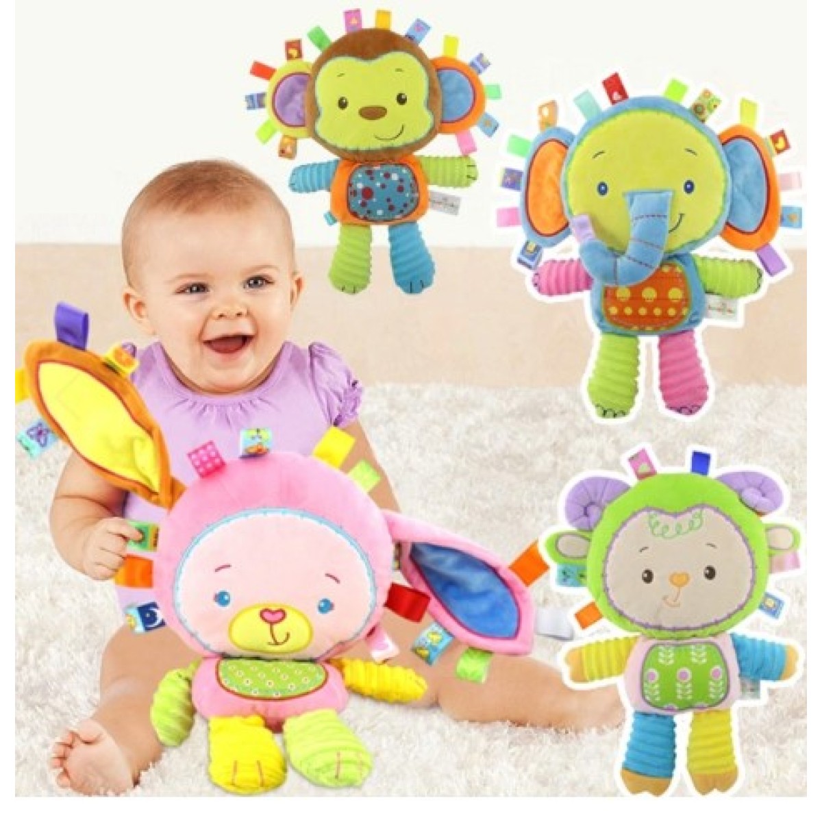 Soft and cute plush cute animals, with a variety of colors for early visual development.