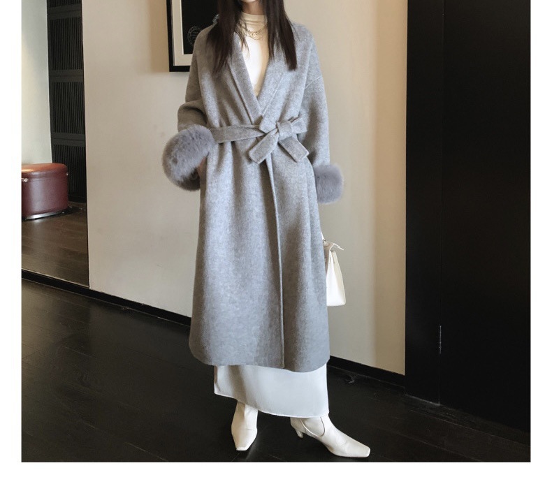 Cuff Detachable Fox Fur Elegant Double-sided Cashmere Coat