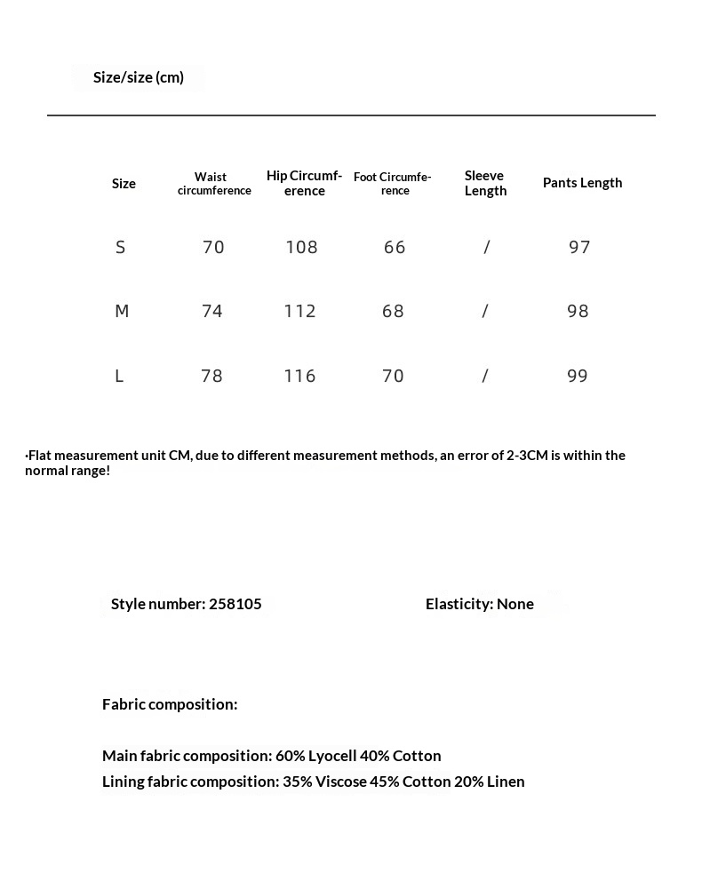 Main Fabric Composition: Tencel (Lyocell fiber)