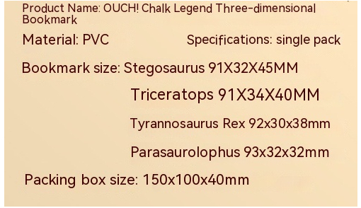 Product information:Color: Tyrannosaurus Rex, Triceratops, Stegosaurus, vice dragon. Style: animation style Style: Bookmark
