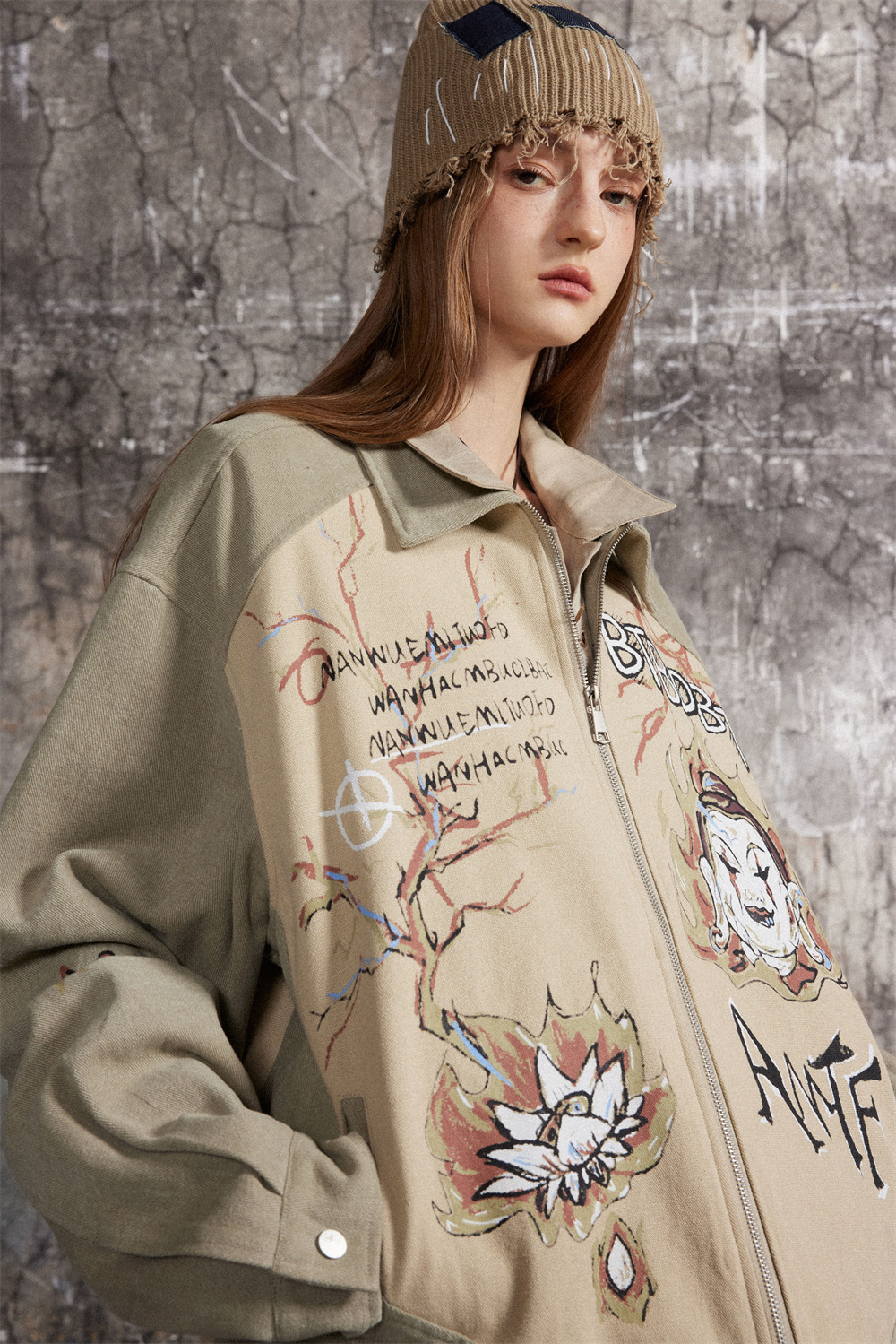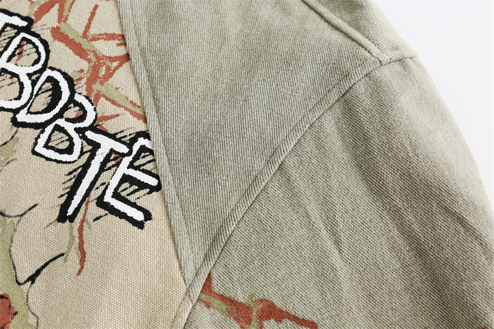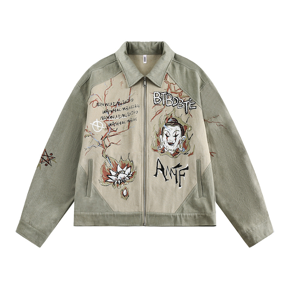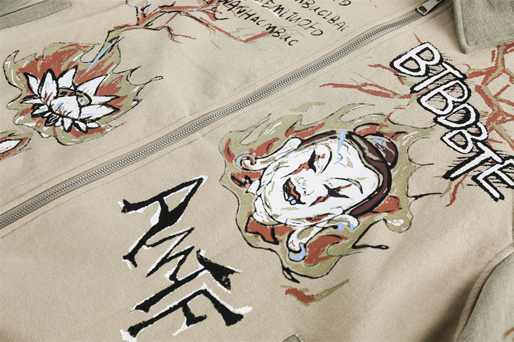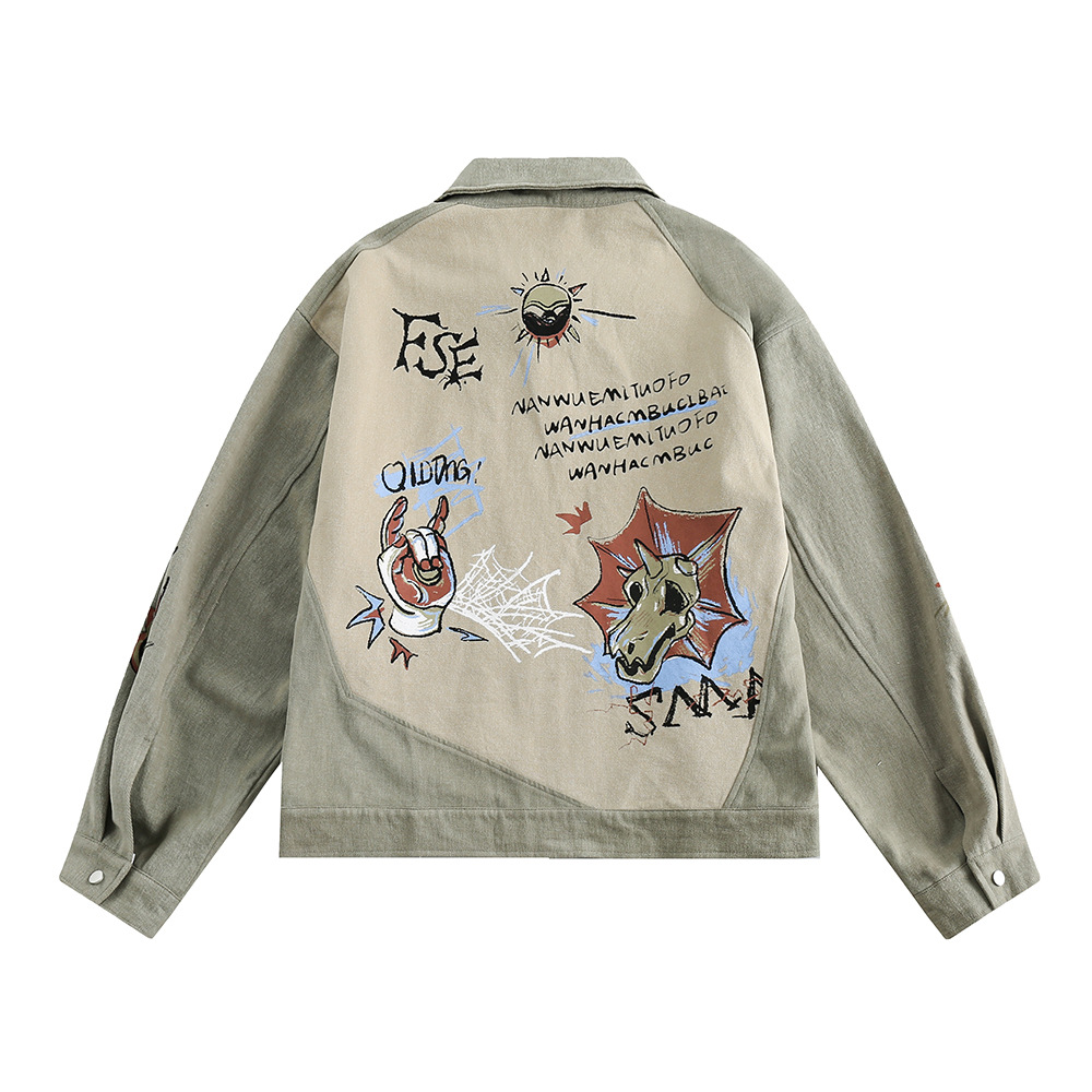 Cultural Graffiti Oil Painting Patterned Denim Jacket Men
