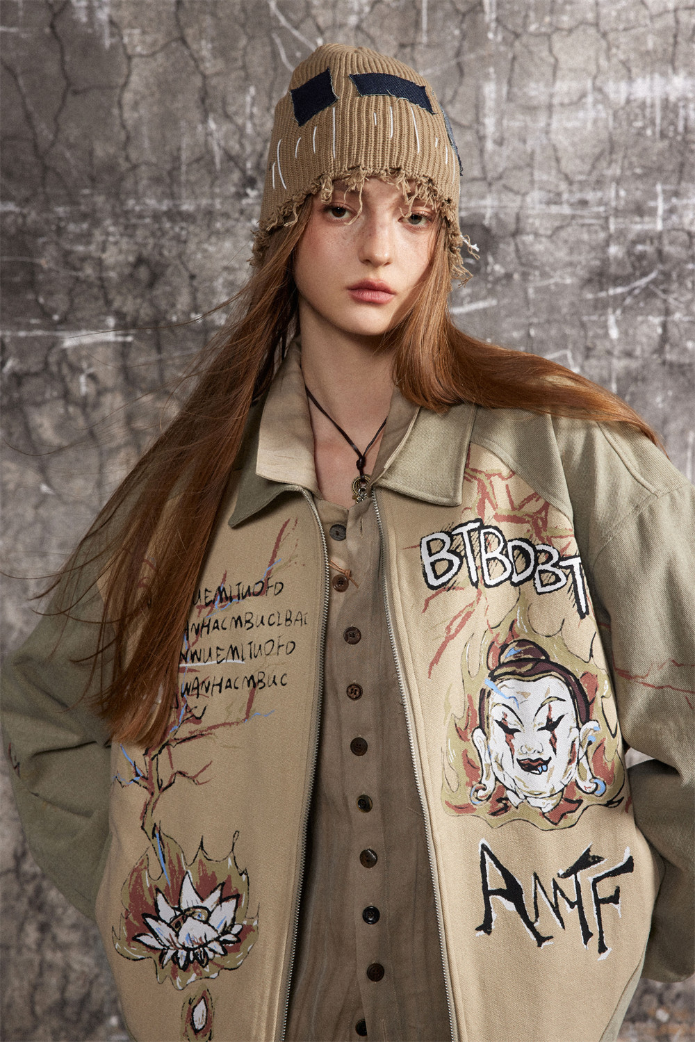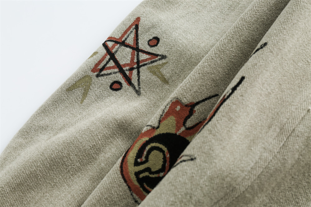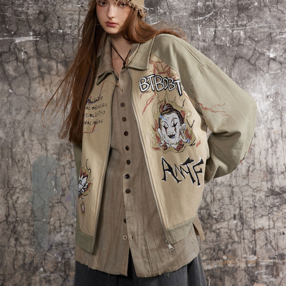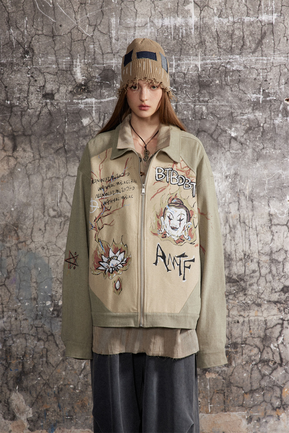 Cultural Graffiti Oil Painting Patterned Denim Jacket Men