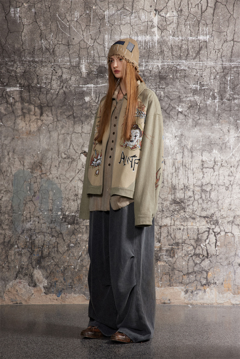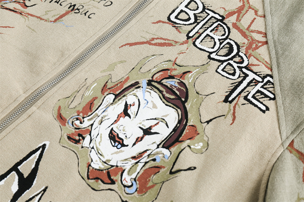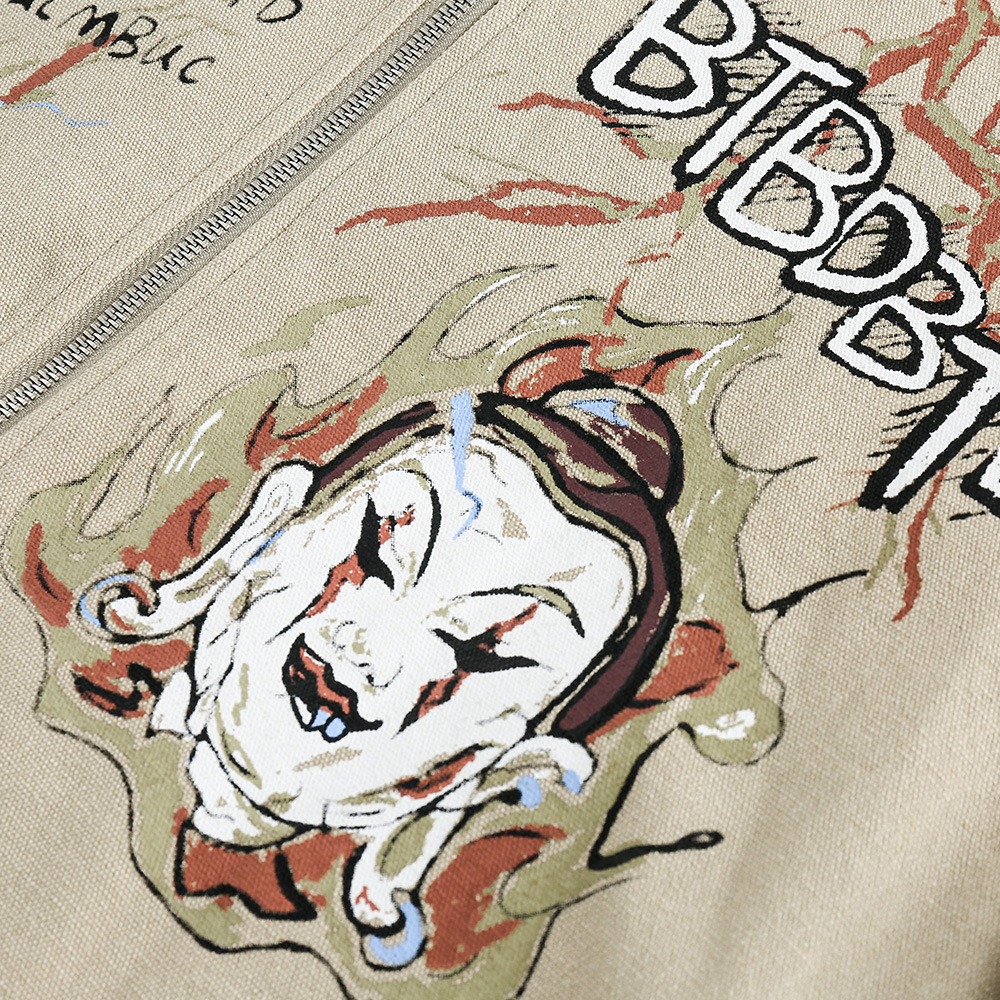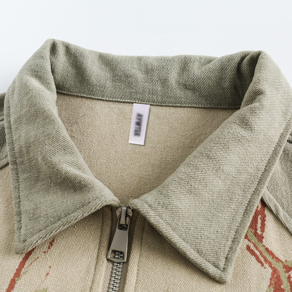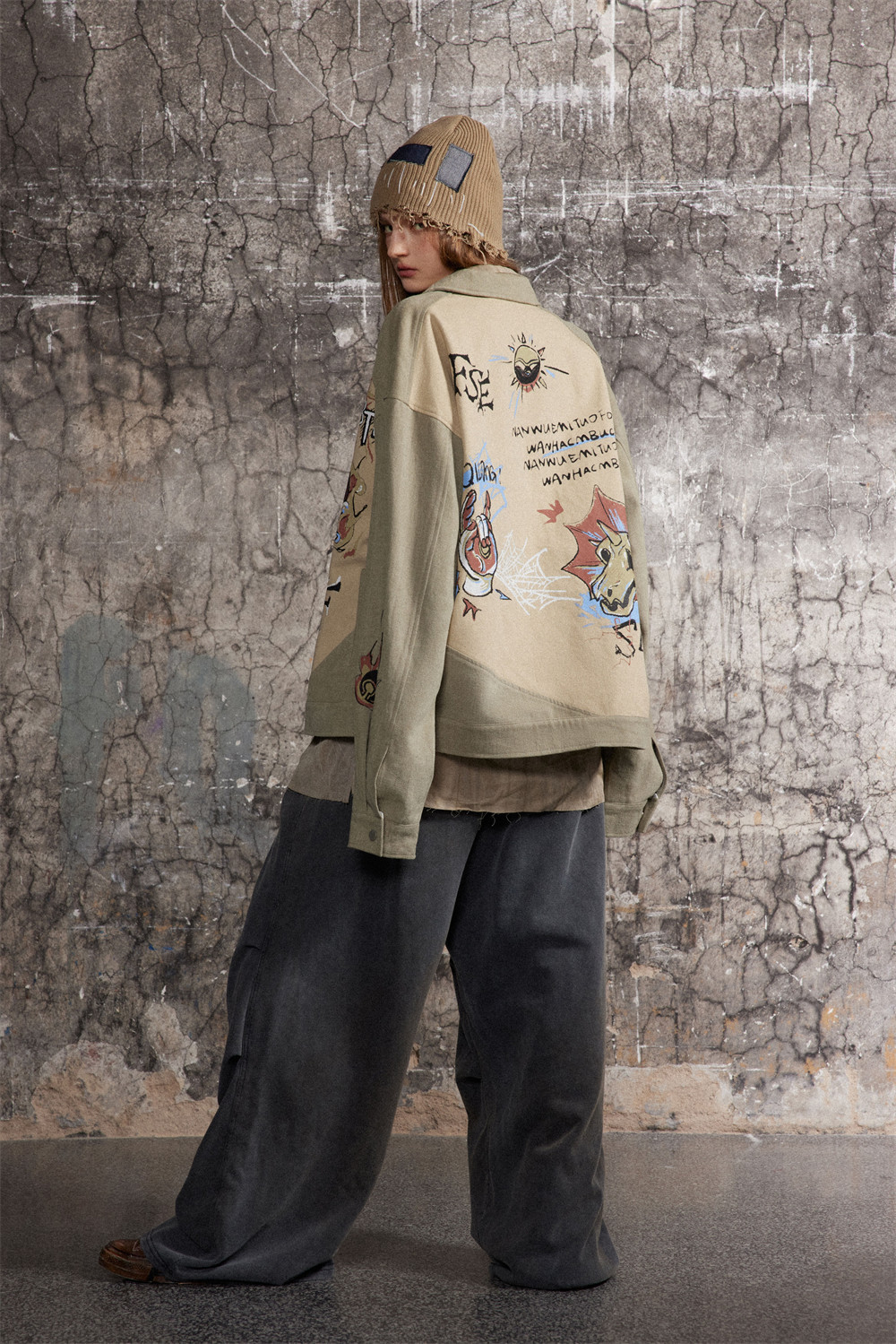 Cultural Graffiti Oil Painting Patterned Denim Jacket Men