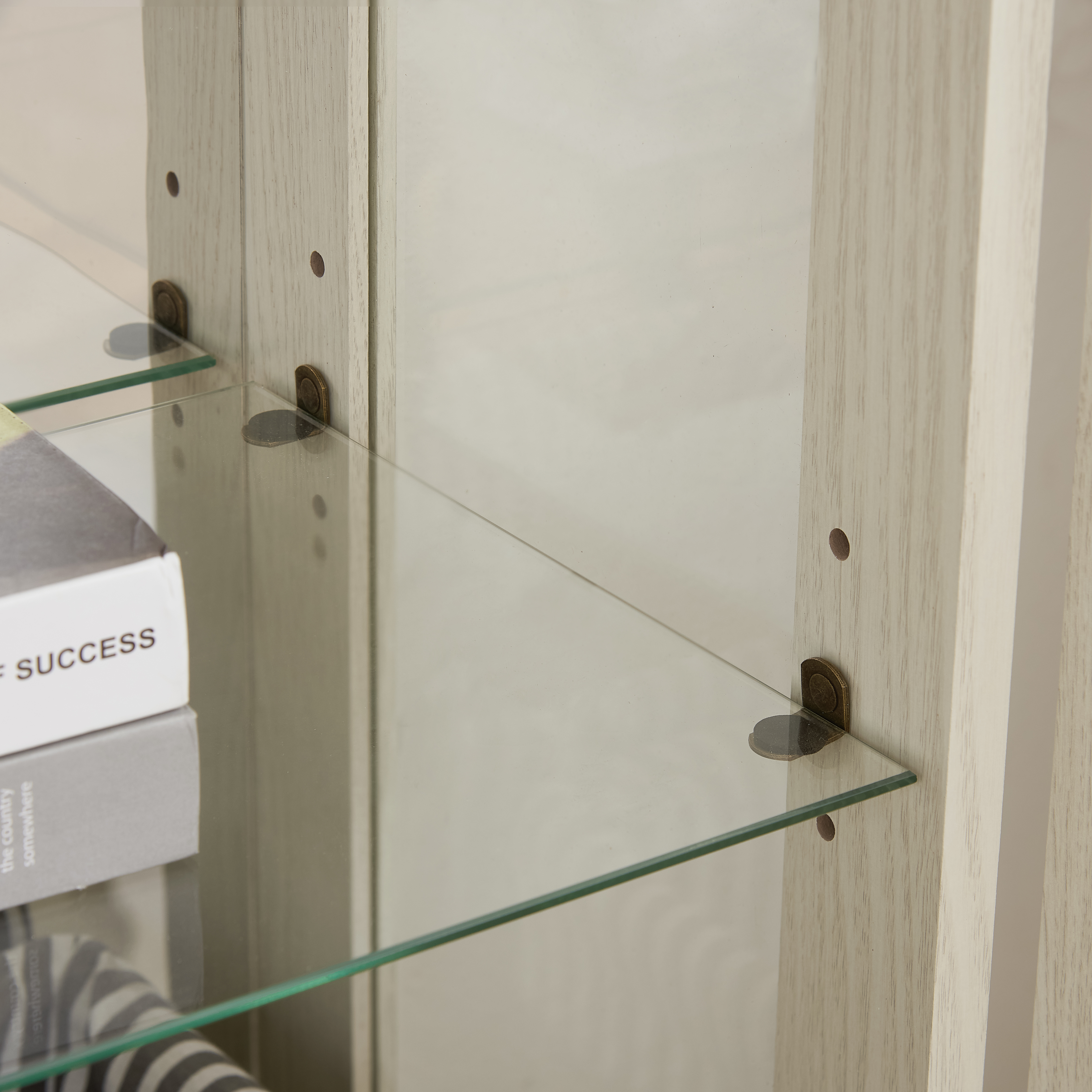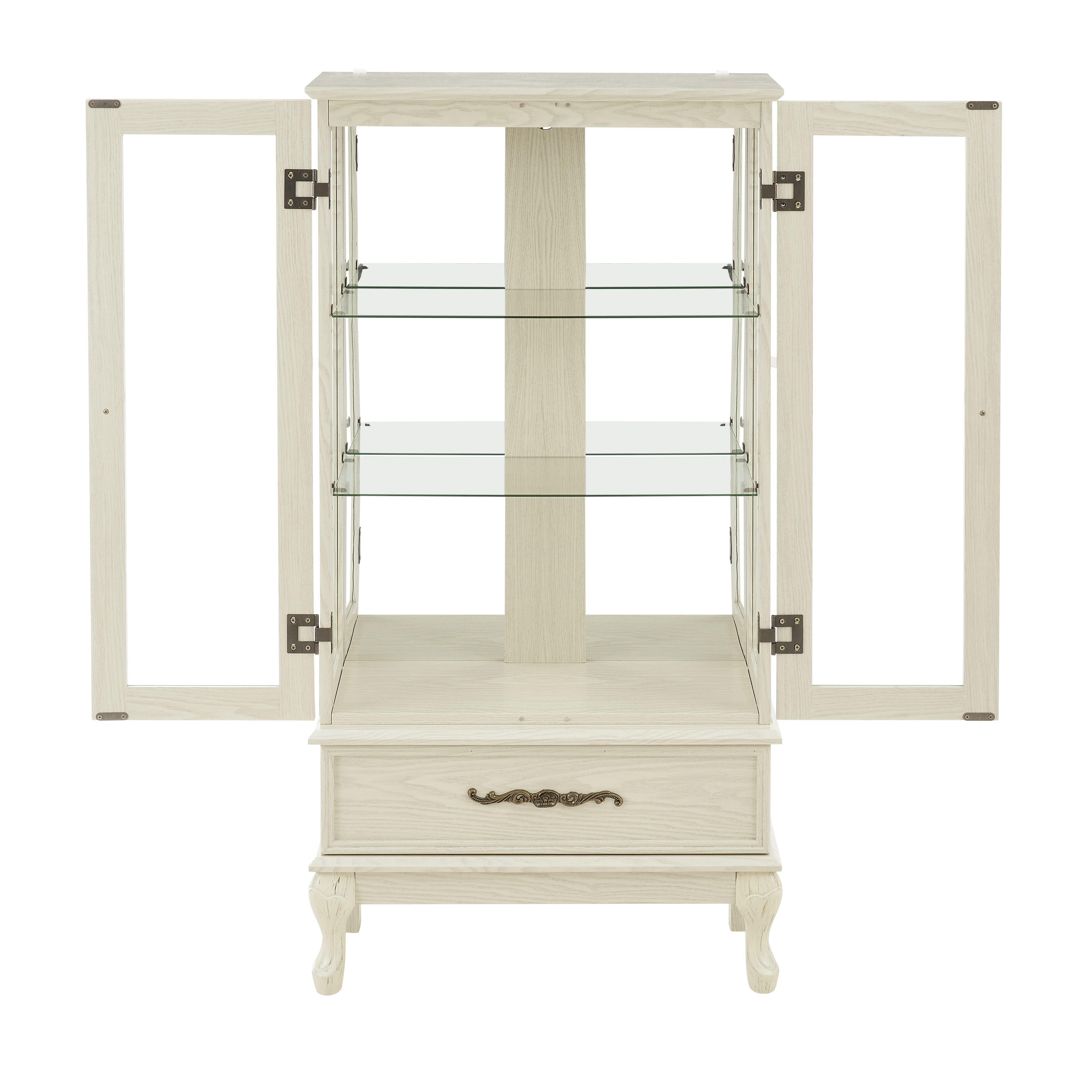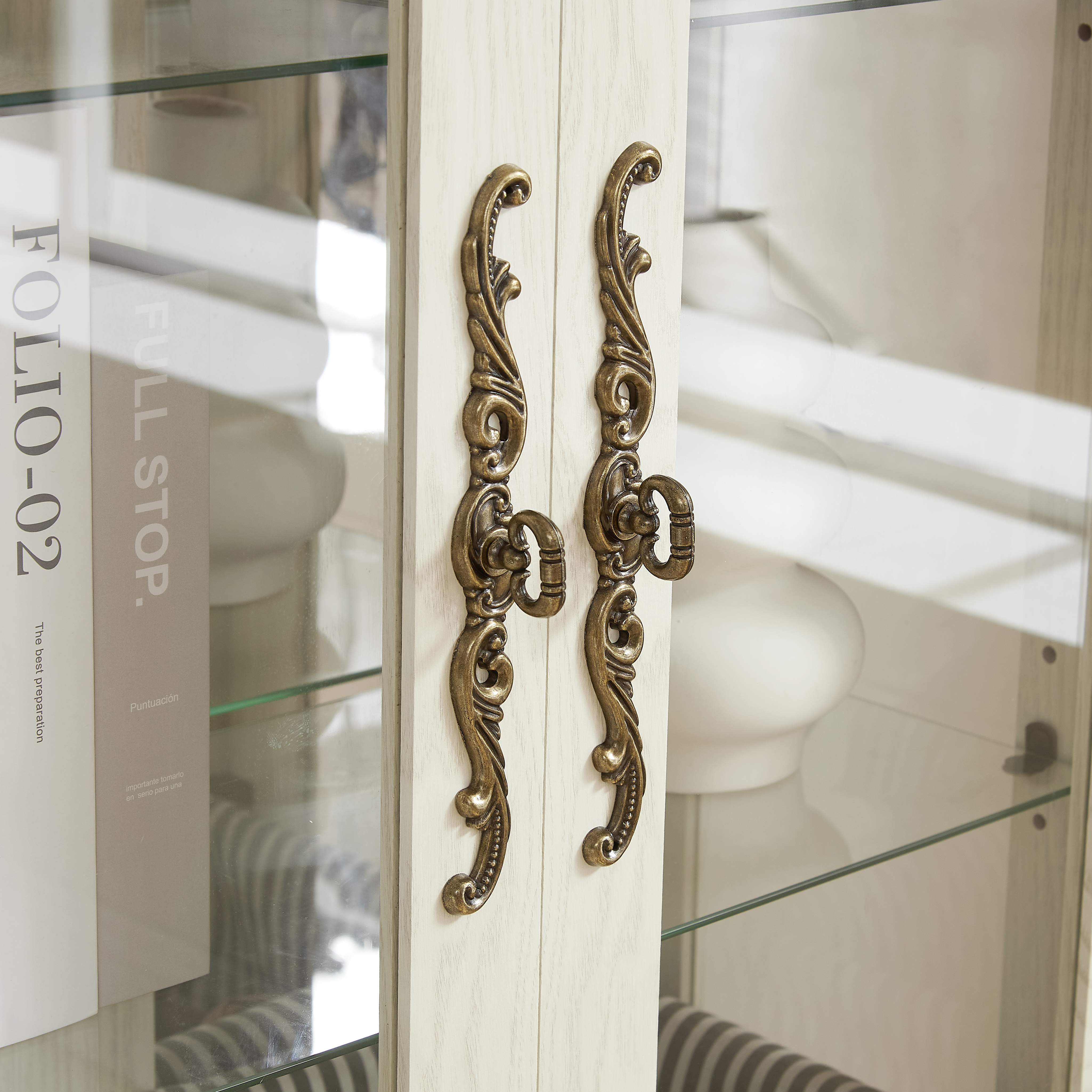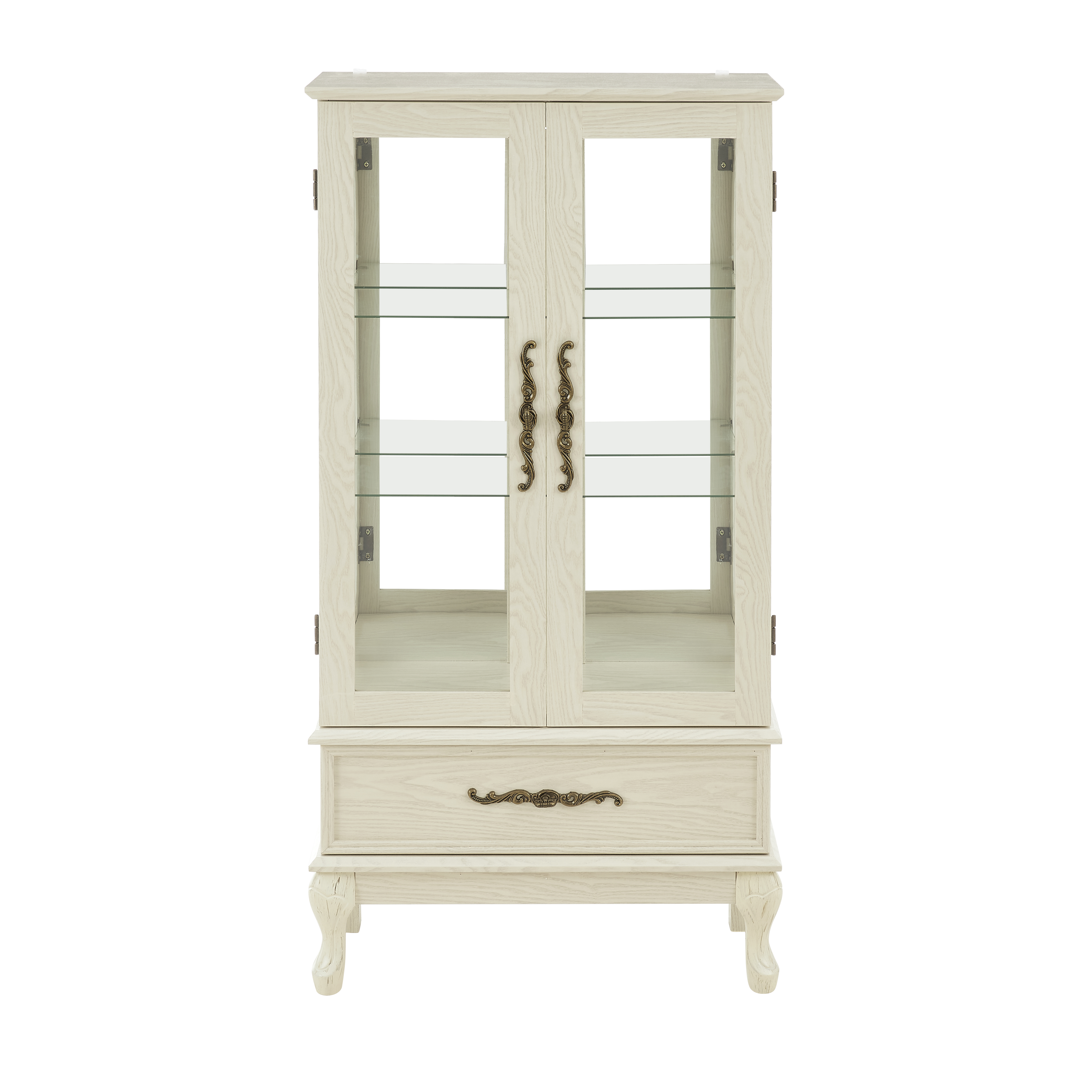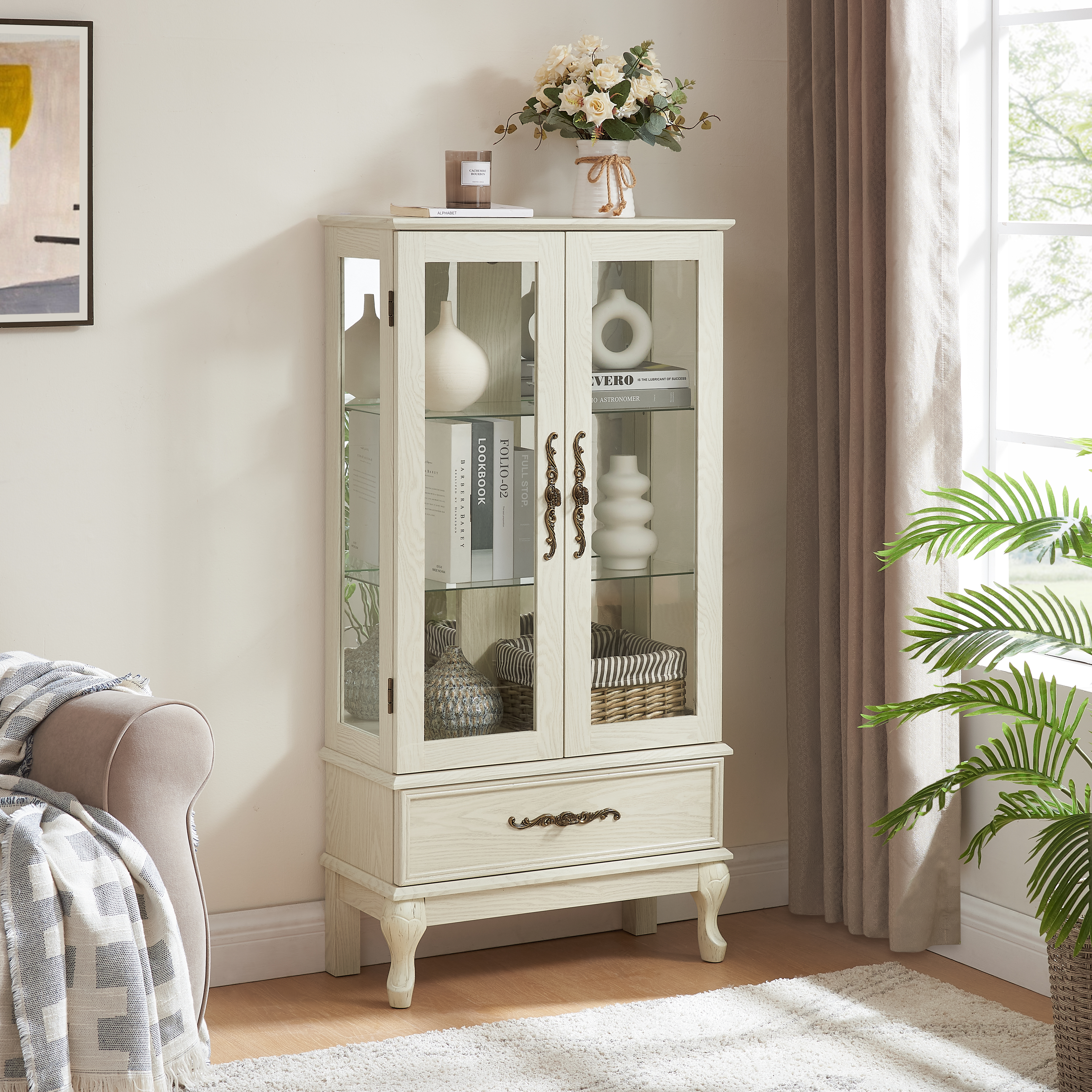 Product Name:Curio Cabinet Lighted Glass Cabinet Glass Wine Cabinet Curio Display Cabinet with Adjustable Glass Shelves 2 Doors and 1 drawer Cabinet Sideboard With Bulb Included Antique White