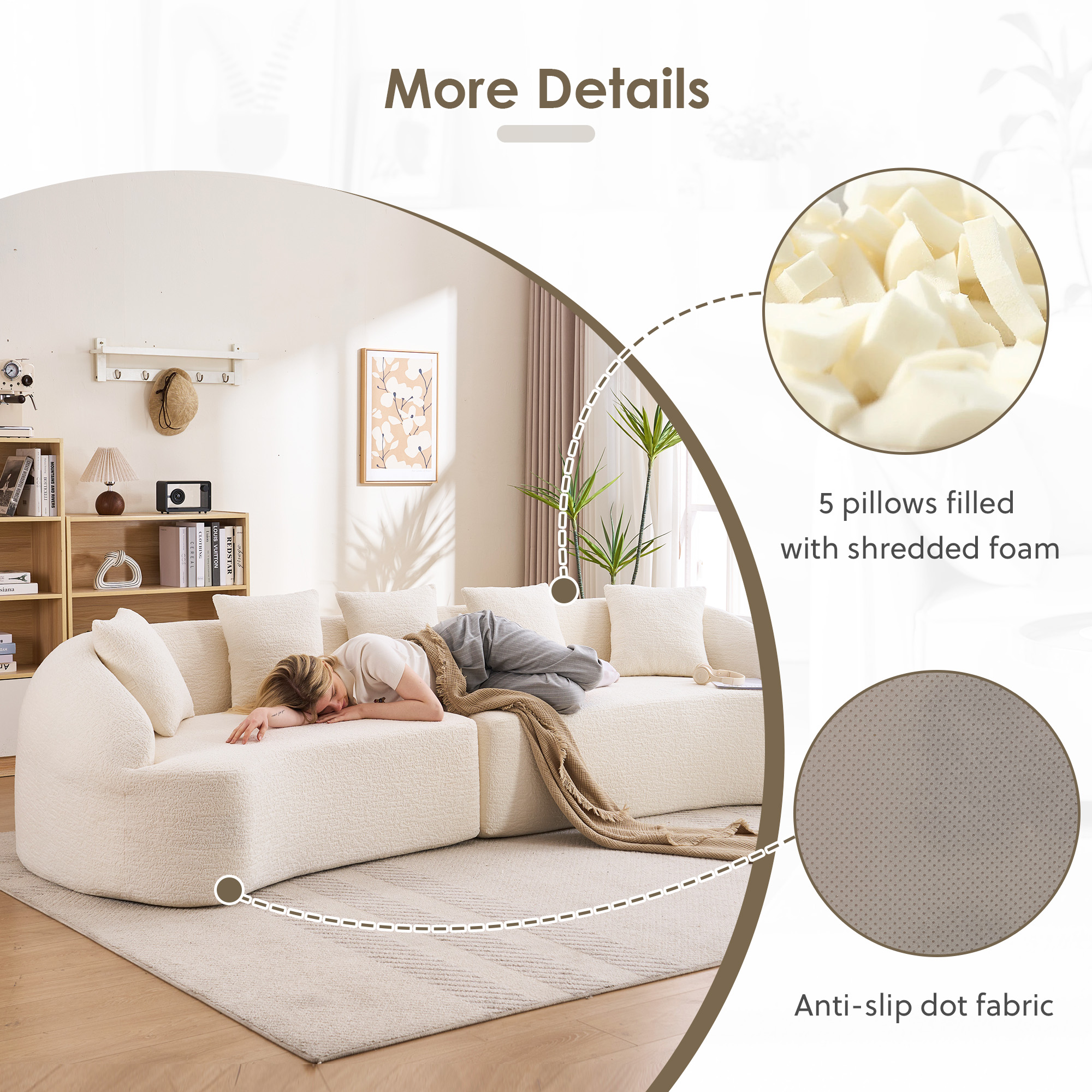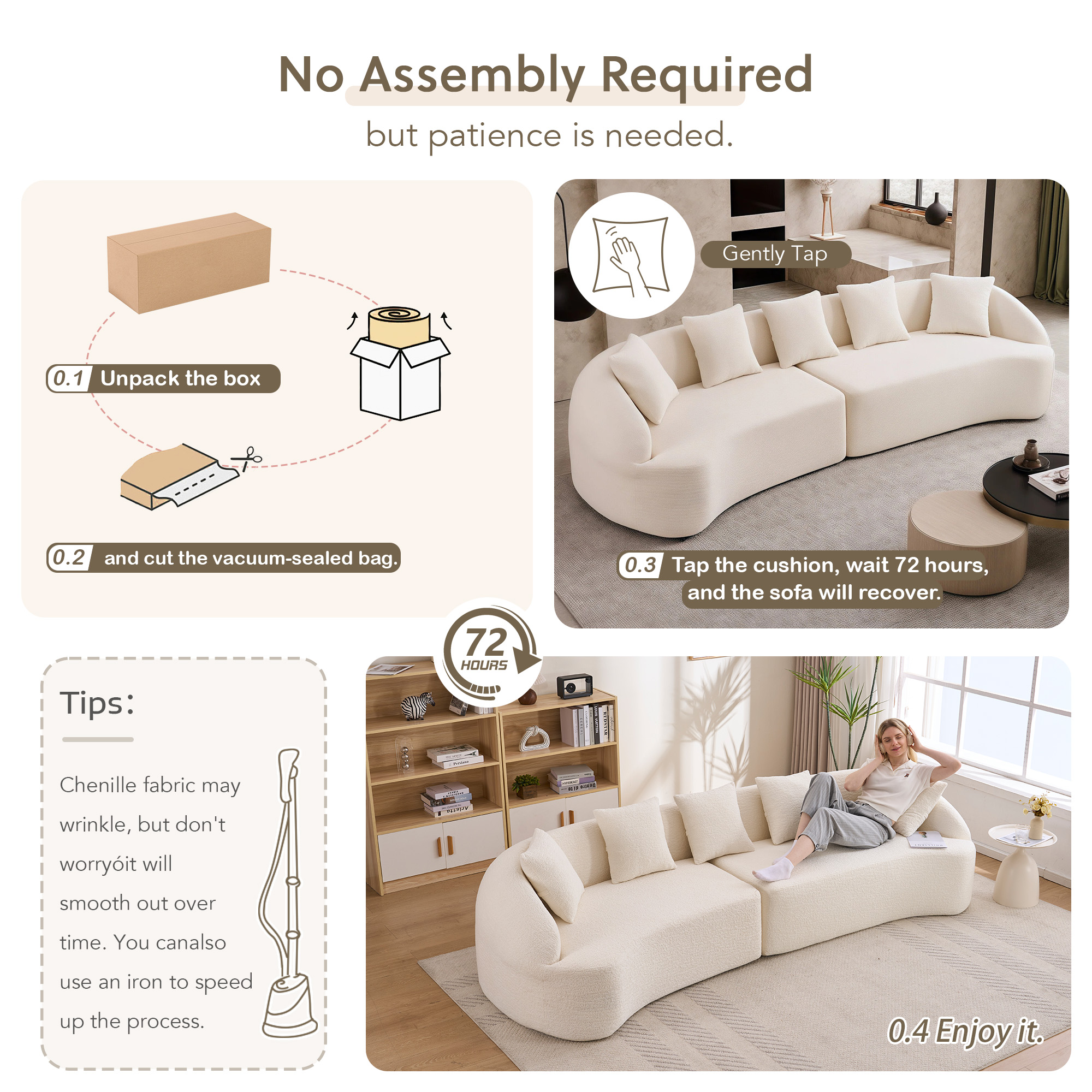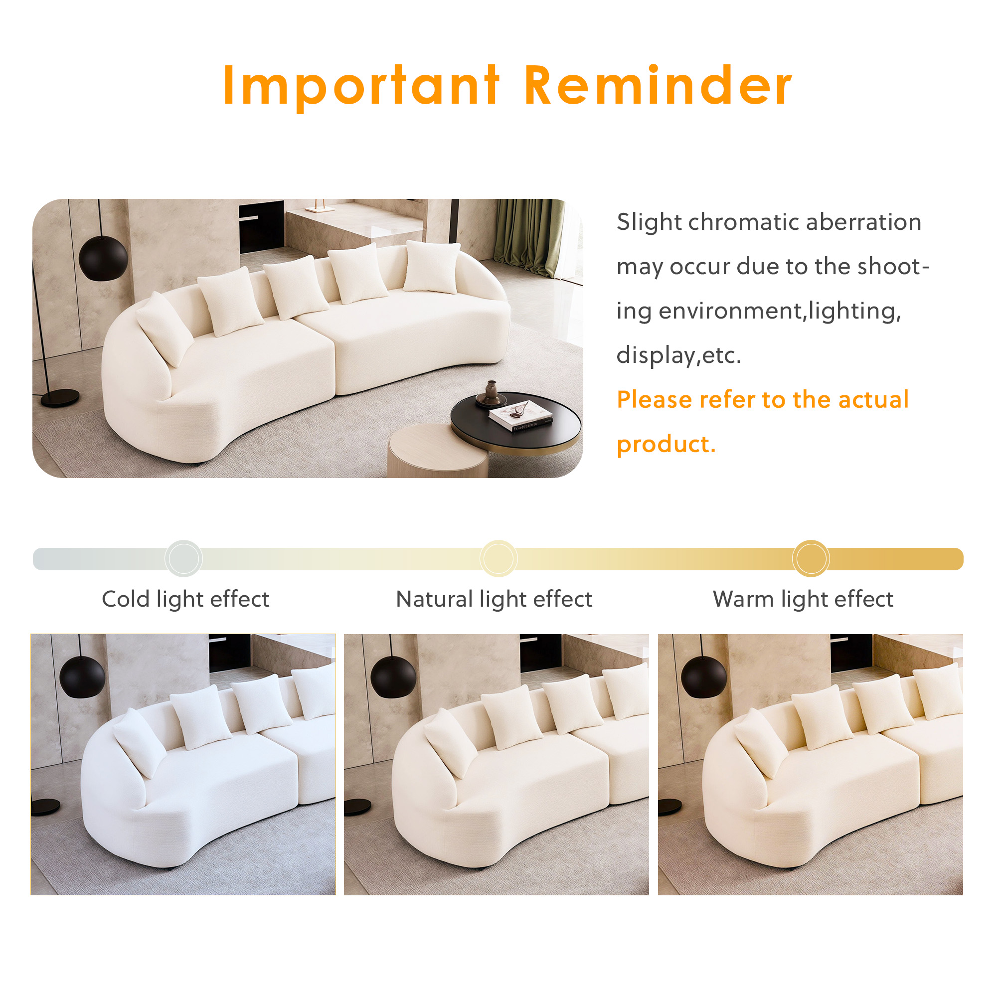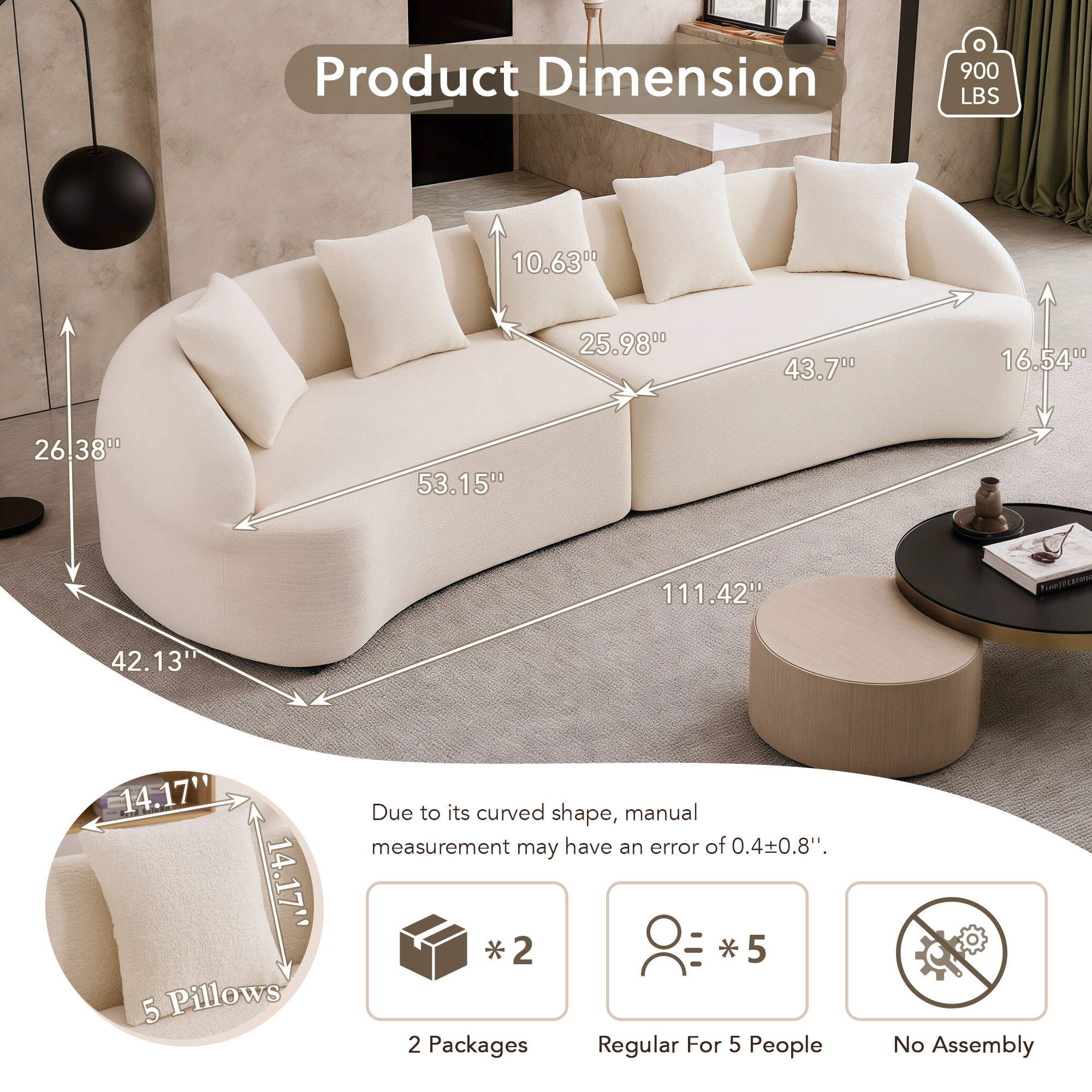 Product Name:Curved Boneless Sofa,Compression Modular 110'' Sectional,White High-Density,Couches Sleeper for Living Room Bedroom Apartment Lounge,Chenille