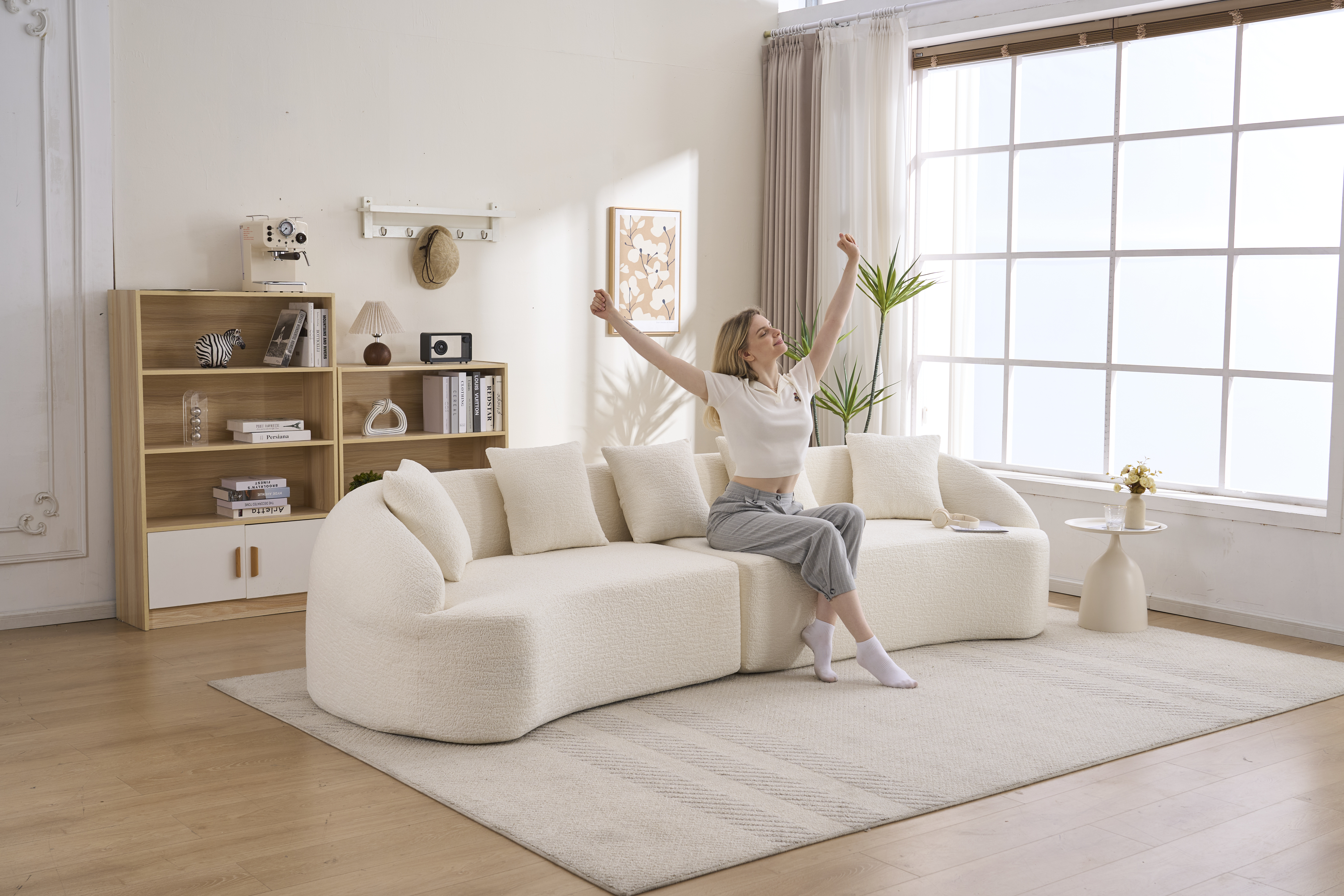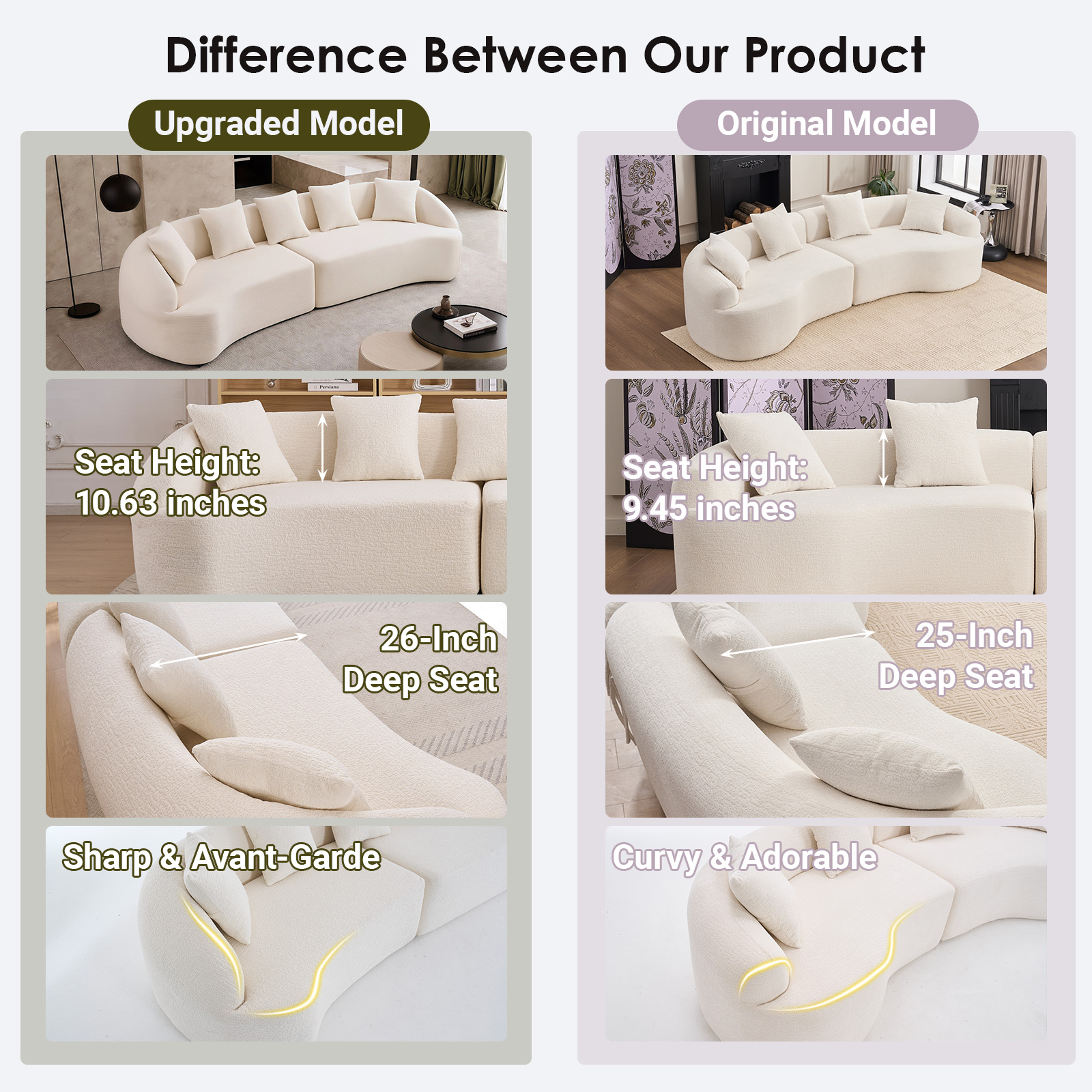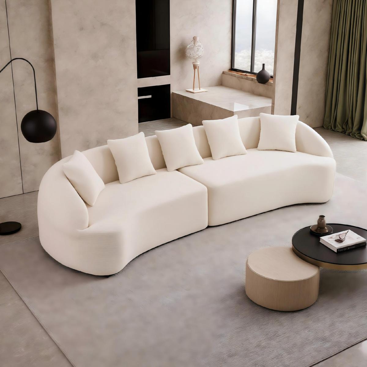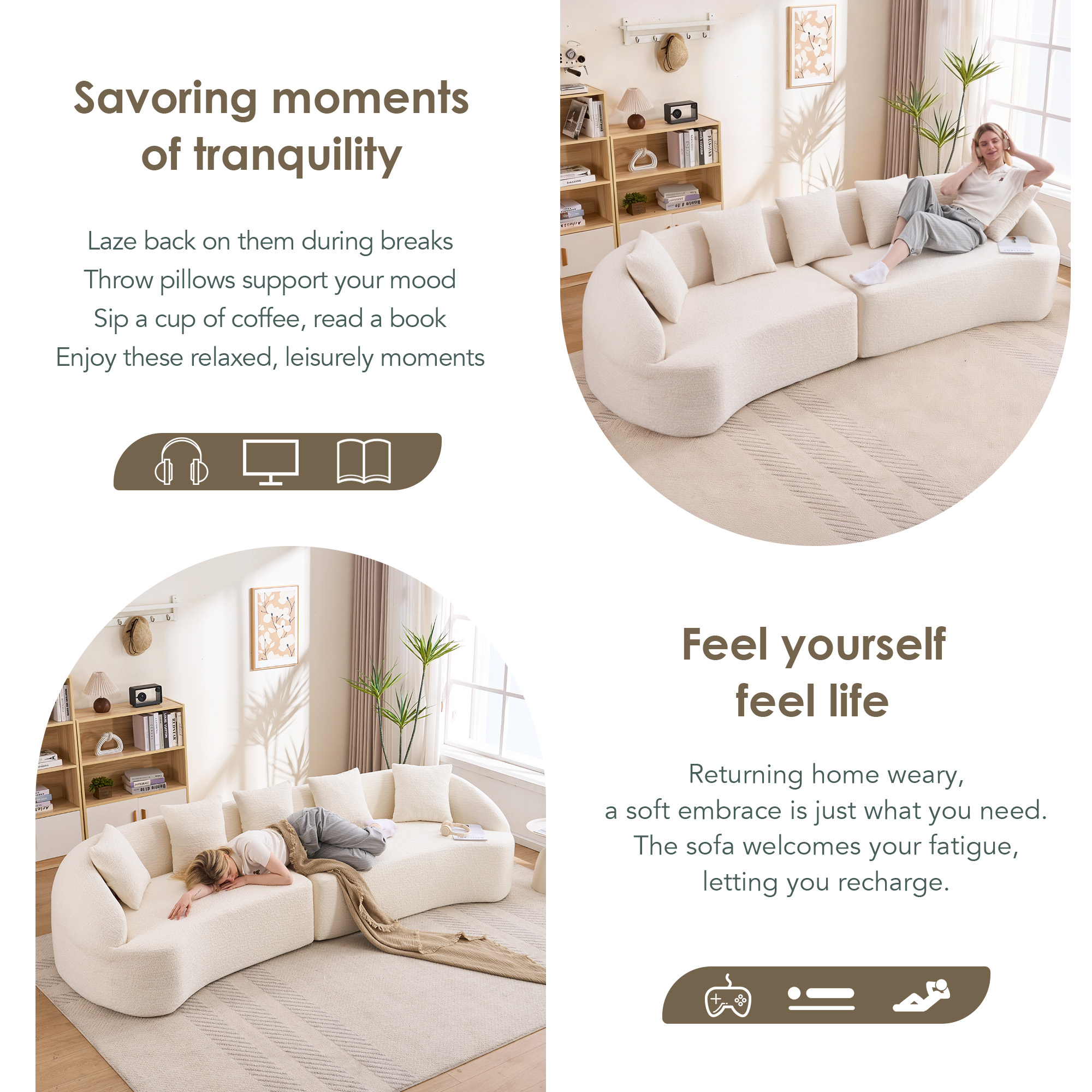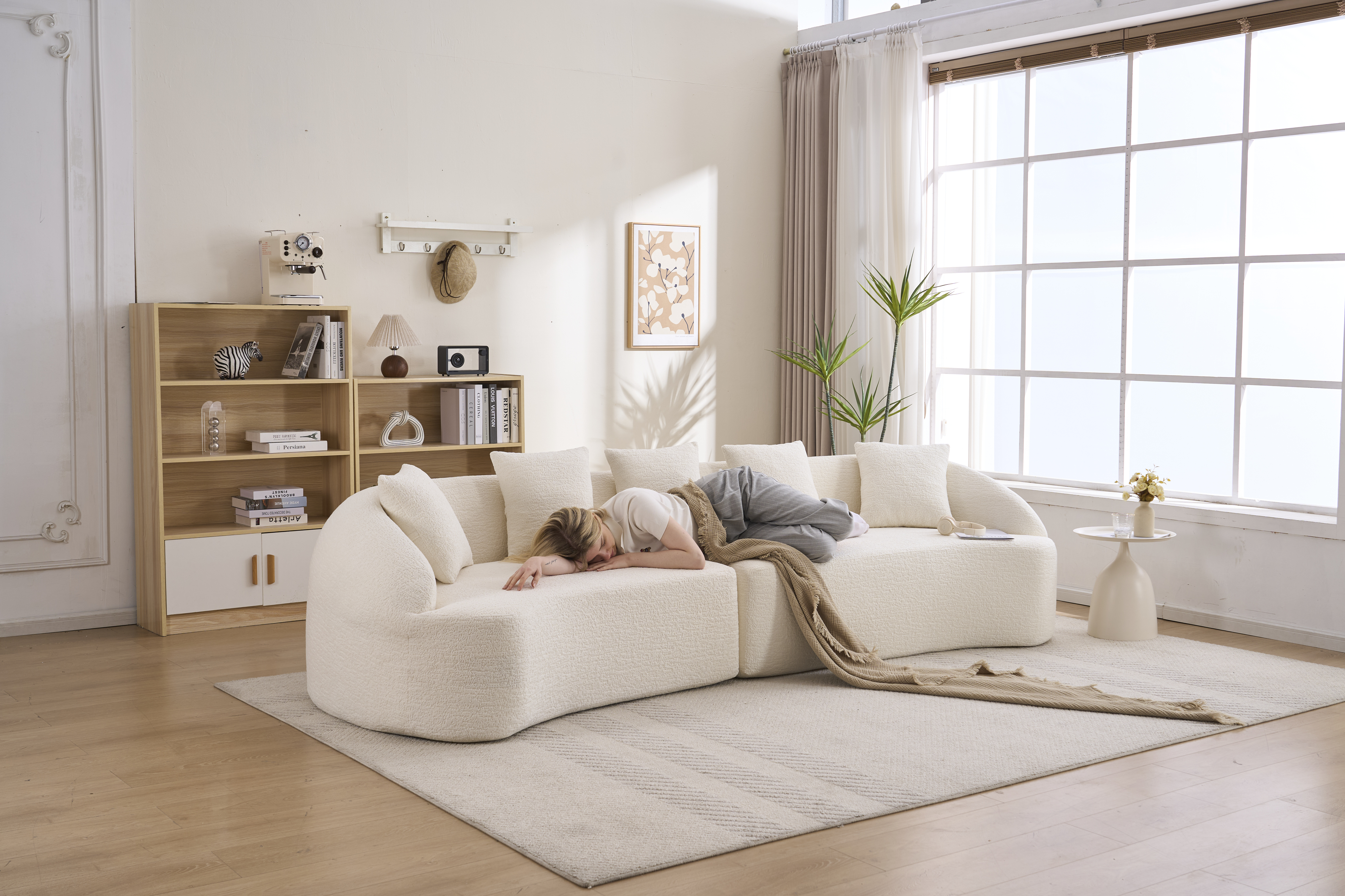 Product Name:Curved Boneless Sofa,Compression Modular 110'' Sectional,White High-Density,Couches Sleeper for Living Room Bedroom Apartment Lounge,Chenille