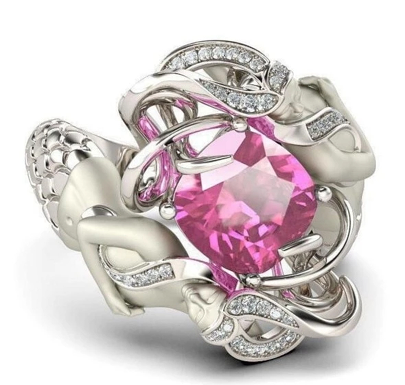 Cushion-Cut Red Natural Ruby Gemstone Ring Luxury 925 Sterling Silver Mermaid Rings for Women Wedding Jewelry