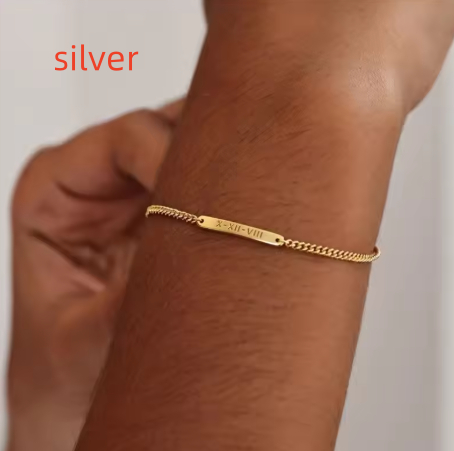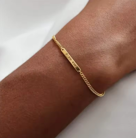 Custom Engraved Mini Bar Bracelet With Chain