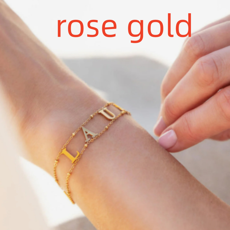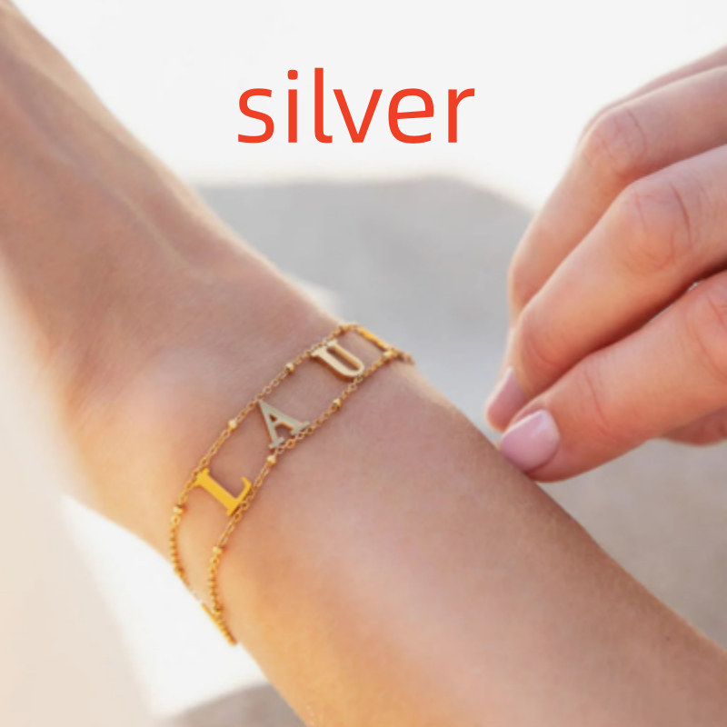 Custom Name Bracelet Double Chain Personalized Separate Initial Letter Bangle Stainless Steel Jewelry Exquisite Gift For Women