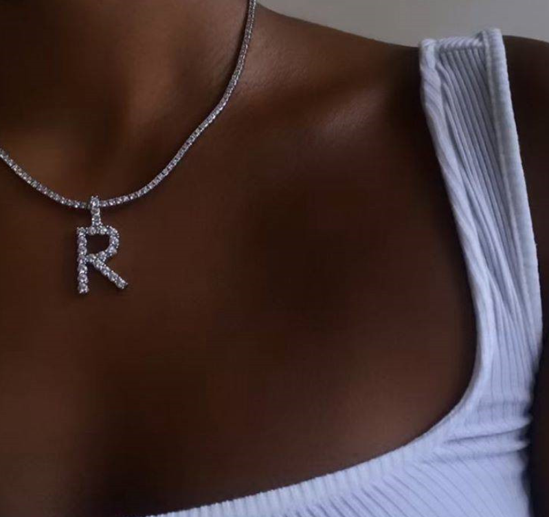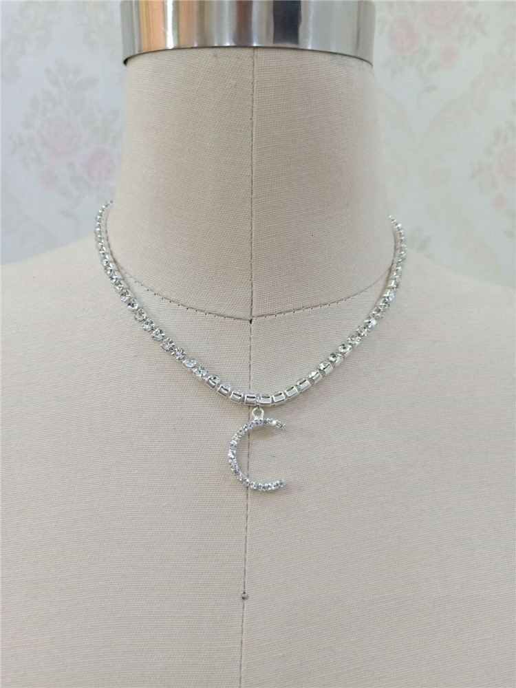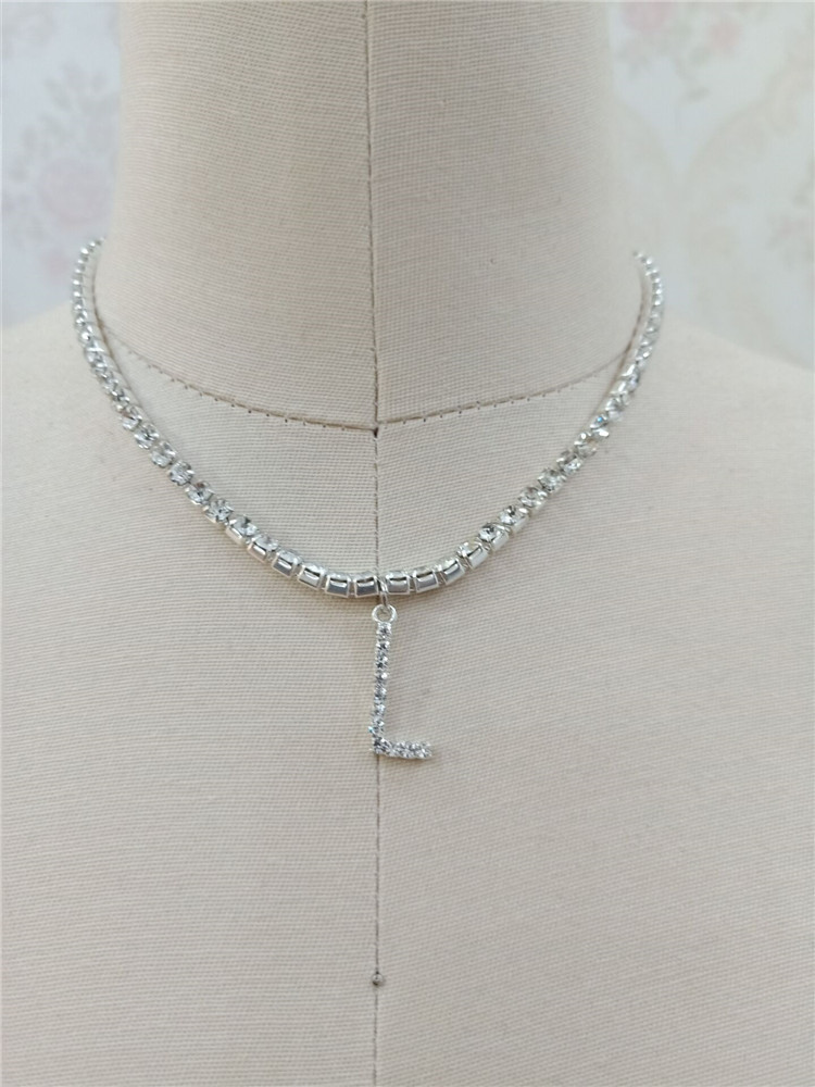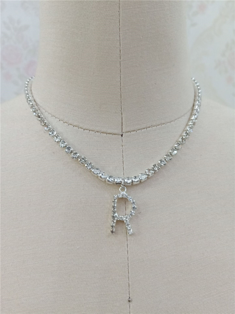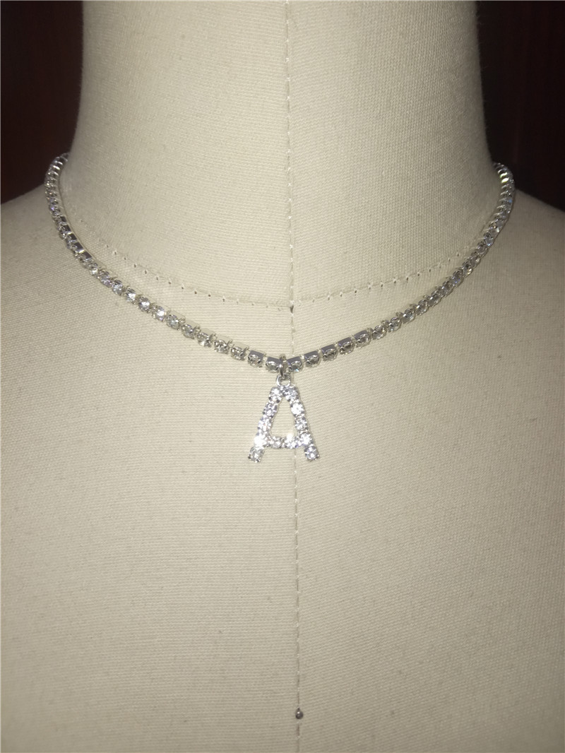 Custom silver tennis personalized name choker initial letter pendant necklace