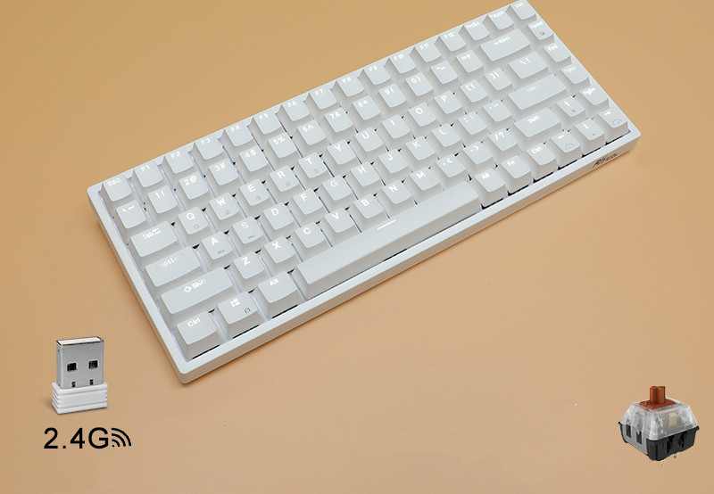 Color classification: A: 84-key three-mode white white light-plug-in shaft-red shaft B: 84-key three-mode white light-plug-in shaft-tea shaft C: 84-key three-mode white white light-plug-in shaft-green shaft D: 84-key three-mode black white light-plug-in shaft-red shaft E: 84-key three-mode black white light-plug-in shaft-tea shaft F:84-key three-mode black white light-plug-in shaft-green shaft