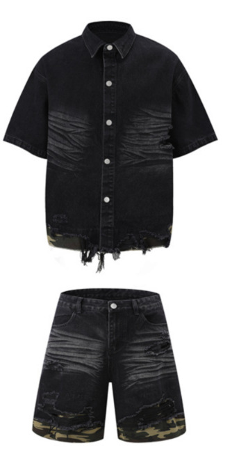 Color: black top, black pants, blue top, blue pants, black suit, blue suit