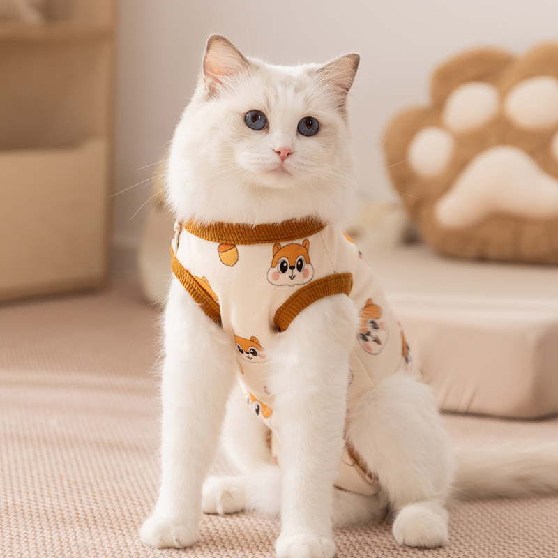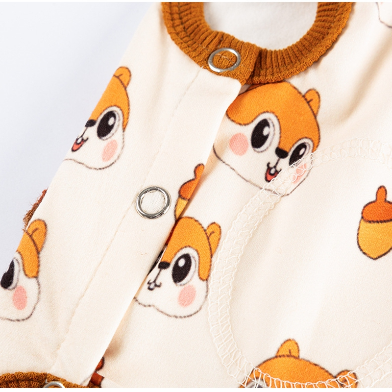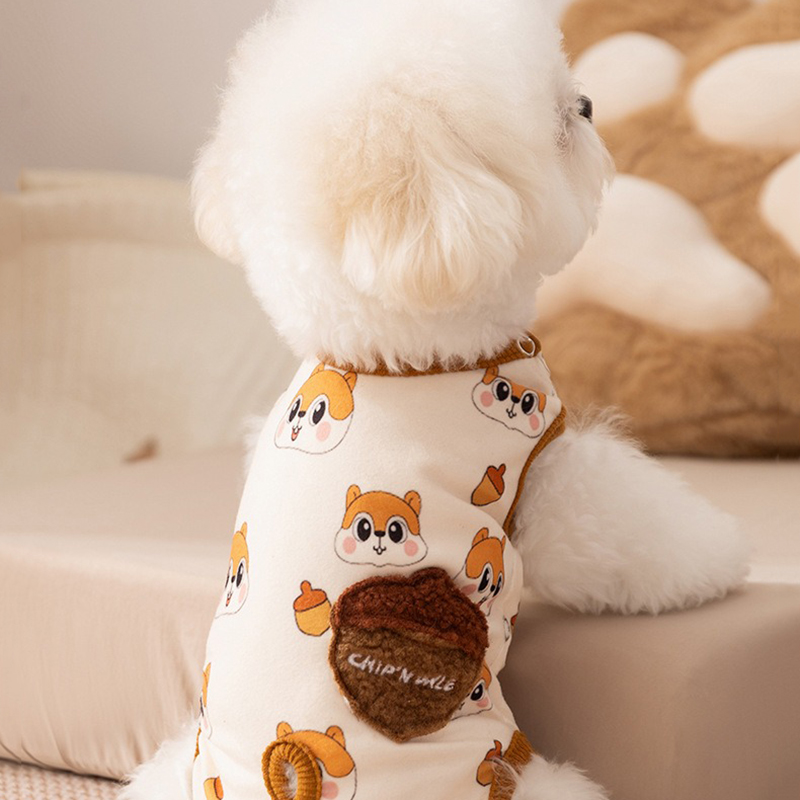 Bring endless cuteness to your pet's wardrobe with this Chip 'n' Dale Themed Pet Onesie! Featuring adorable squirrel and acorn prints, this jumpsuit is a must-have for fans of the beloved duo. Available in two charming color schemes—cream with yellow trim and white with brown trim—each onesie is designed with a soft, cozy fabric to keep your small dog comfortable all day.